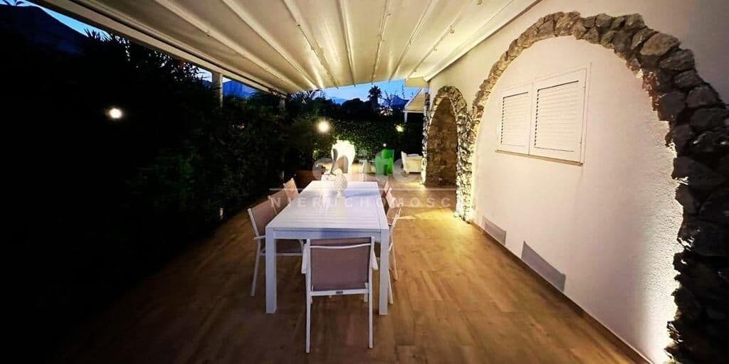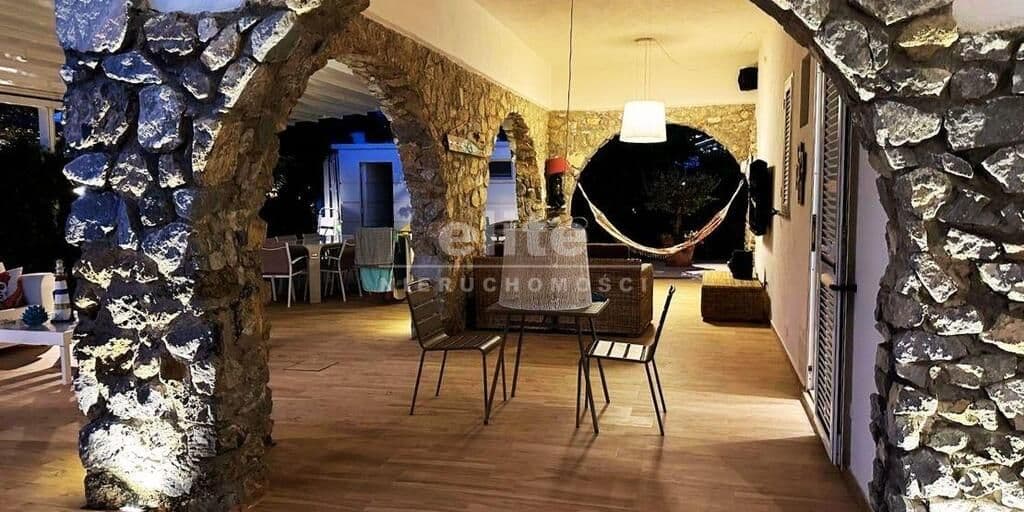 Willa posiada 5 pokoi , 3 łazienki, wszystkie urządzone stylowo i komfortowo. Posiada również dużą i przestronną kuchnię z dużymi oknami z mozaiką, z widokiem na ogród, gdzie można zakwaterować się z gośćmi lub po prostu odpocząć na wygodnych fotelach i sofach. Ten dom to idealne rozwiązanie dla osób poszukujących luksusowej rezydencji w ekskluzywnej i fascynującej lokalizacji, gdzie będą Państwo mogli żyć w całkowitej prywatności i spokoju. Dom po całkowitym remoncie , wyposażony w klimatyzację z funkcją grzania , system alarmowy, automatyczne nawadnianie.