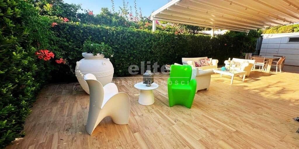 Dom pow. 110 m2 otoczony pięknym ogrodem o pow. 250 m2 z starannie dobranym drzewostanem i roślinnością . Całość zabudowy z minimalistycznymi detalami, wysokiej jakości ceramicznymi podłogami i meblami z dużą przestrzenią i zewnętrzną łazienką. Aranżacja jest designerska, wykonana z wysokiej jakości materiałów, z wyrafinowanym, eleganckim i wyrafinowanym smakiem.