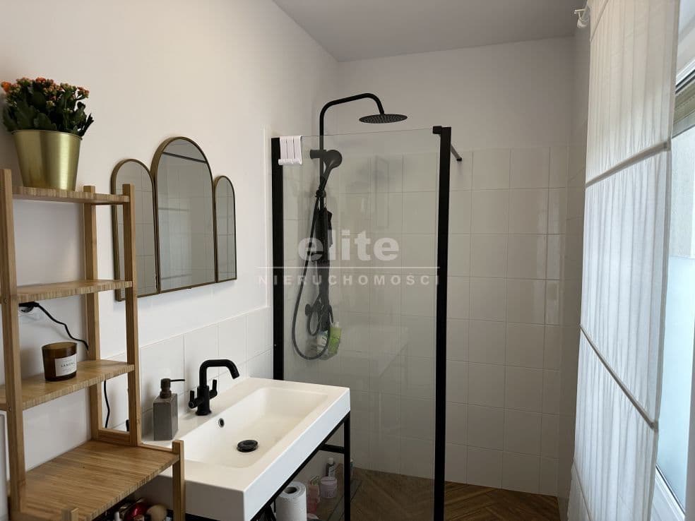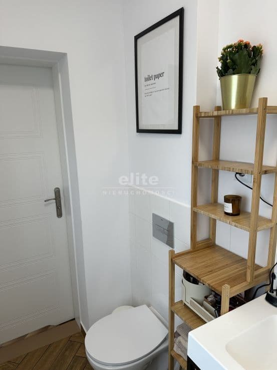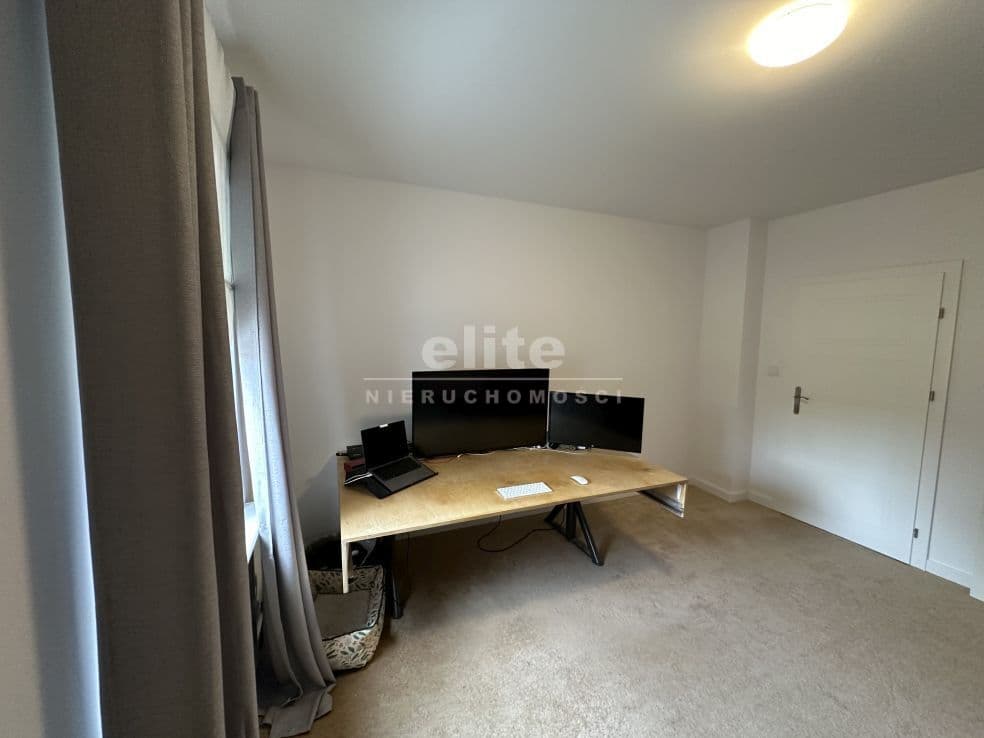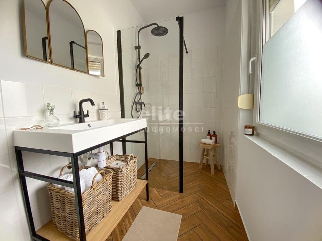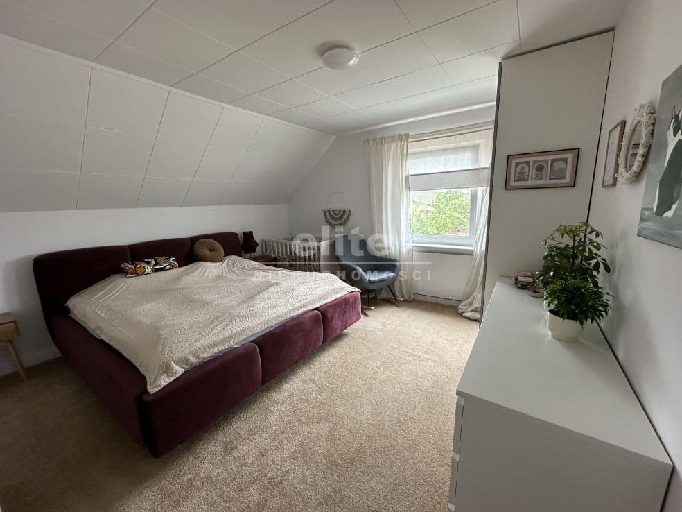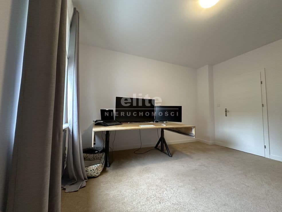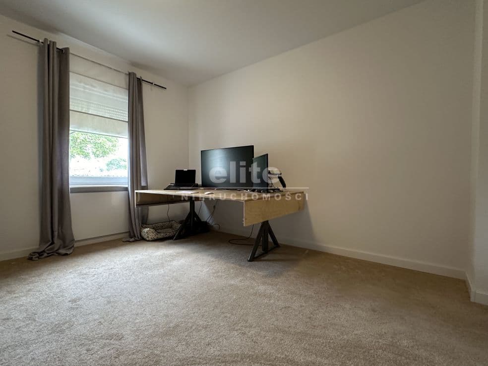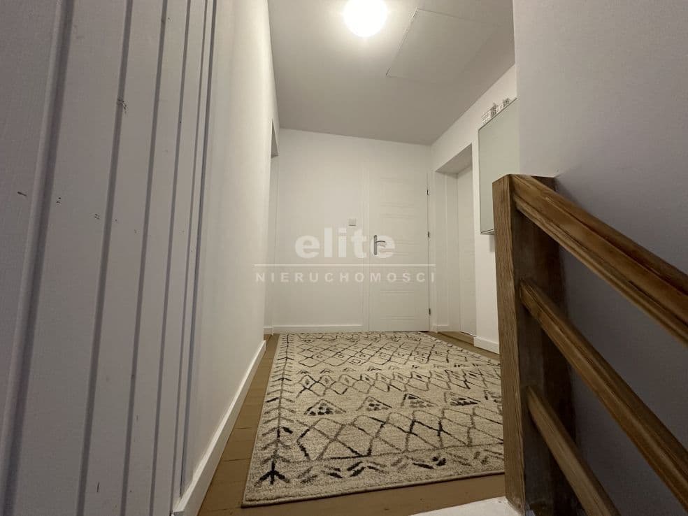 Układ pomieszczeń: na parterze znajduje się przestronny przedsionek, łazienka z prysznicem (ogrzewanie podłogowe), kuchnia, sypialnia i ogromny salon. Na piętrze znajdziemy dwie sypialnie, toaletę i pomieszczenie gospodarcze, które można przeznaczyć na garderobę. Pomieszczenia są przestronne, jasne, a dom posiada niepowtarzalny klimat. Na podłogach panele, kafle, w sypialniach - wykładzina.