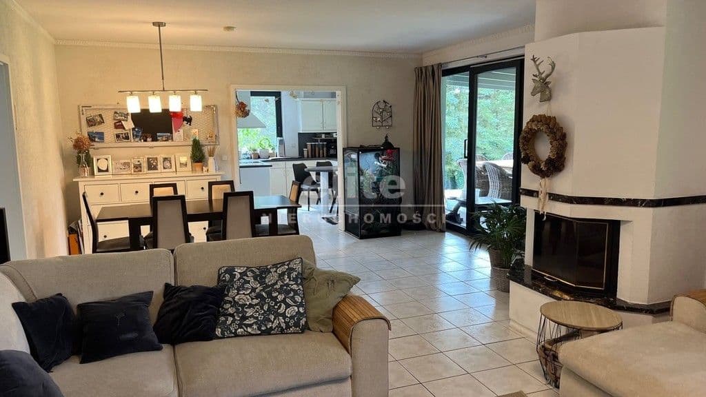 System monitoringu, nowe ogrodzenie, automatyczna brama wjazdowa, nowy piec gazowy, pełne wyposażenie AGD wraz z niezbędnymi sprzętami domowymi i ogrodowymi, nowe okna trzy szybowe, rolety automatyczne, solary na dachu, zbiornik na gaz (5000l), studnia głębinowa z pompą, ekologiczna oczyszczalnia, ogrzewanie podłogowe, nowe rynny, internet światłowód.