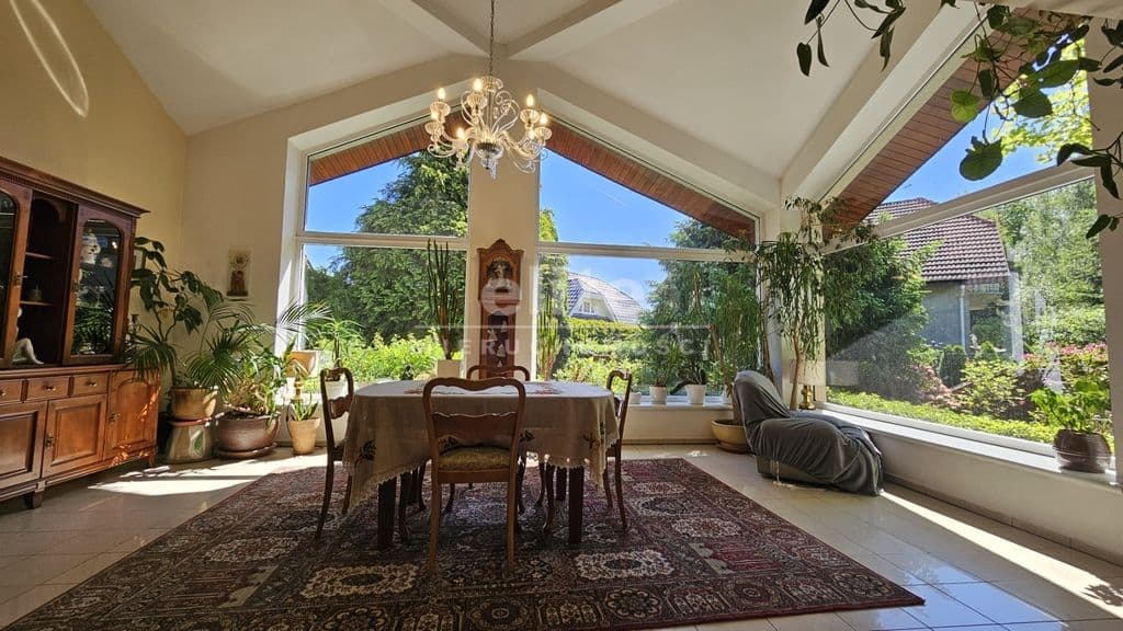 Okna PCV w kolorze białym, ściany gładzone malowane częściowo pokryte tapetą. Na powierzchnię 272 m składają się pierwszy poziom: hol, salon z panoramicznymi oknami i antresolą typu czytelnia, gabinet, WC, garderoba, kuchnia z przejściem do spiżarni, pralni garażu dwu stanowiskowego, pomieszczenia gospodarczego oraz drugi salon kominkowy z wyjściem bezpośrednio do zagospodarowanego ogrodu. Łączna powierzchnia parteru wynosi 215m. Piętro stanowią trzy sypialnie jedna z własną łazienką, biblioteka typu antresola, pokój kąpielowy oraz górny taras. Dom został wykończony w stylu klasycznym z dużą ilością dodatków antycznych mebli. Ogród zagospodarowany 25- letnim drzewostanem o raz liczną odmiana zielonych nasadzeń. Z posesji wyjście bezpośrednie do okolicznego lasku i części zielonej Bezrzecza. Bliskość szkoły, sklepów, komunikacji miejskiej, to dodatkowe atuty opisywanej nieruchomości. Nieruchomość z dużym potencjałem dla osób ceniących spokój i bliskość przebywania z naturą. zapraszam do kontaktu z maklerem prowadzącym.