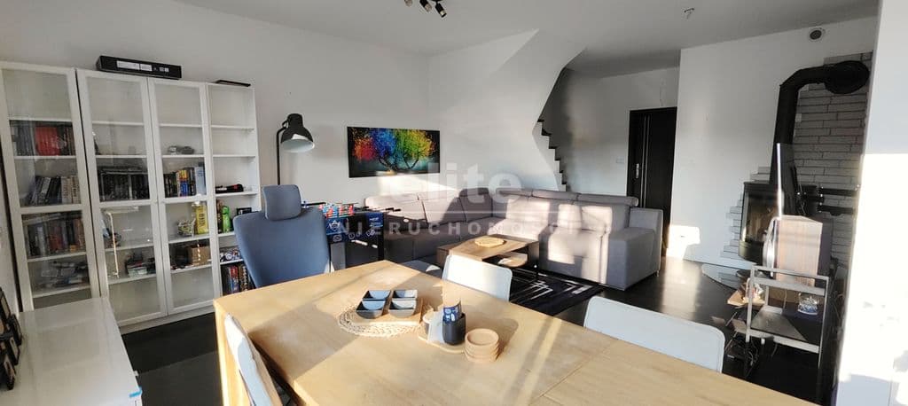W skład domu wchodzą parter, piętro oraz poddasze nieużytkowe. Na parterze znajduje się otwarty salon połączony z jadalnią, kuchnią, z wyjściem na taras i ogród, a także z miejscem na klimatyczny kominek wolnostojący, który pełni również funkcję grzania. Dodatkowo, na tym poziomie, znajduje się toaleta z umywalką, wiatrołap z dużą szafą w zabudowie oraz jednostanowiskowy garaż zamykany bramą na pilota. Ergonomia tej przestrzeni została bardzo dobrze wykorzystana i sprawdzała się przez wiele lat dla rodziny 2+2.