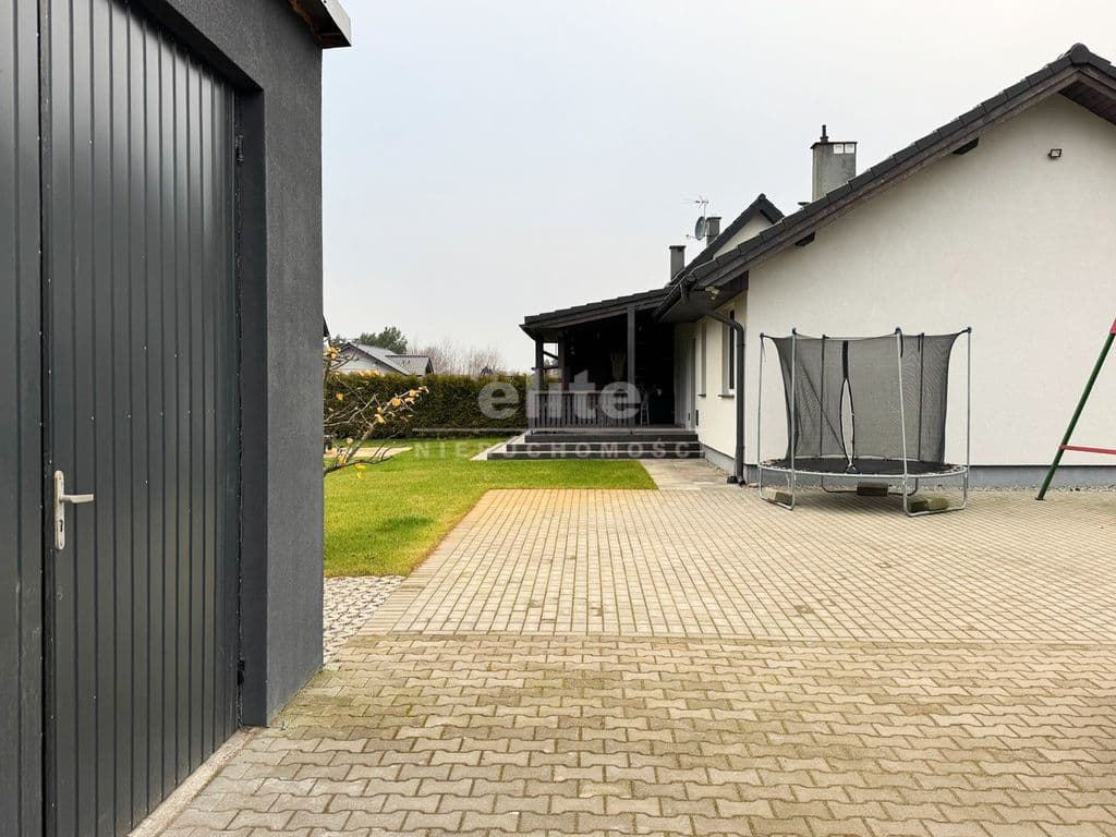 Na podjeździe oraz dookoła domu ułożona kostka brukowa, garaż na dwa samochody lub małą pracownię.