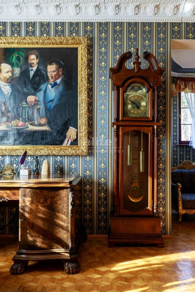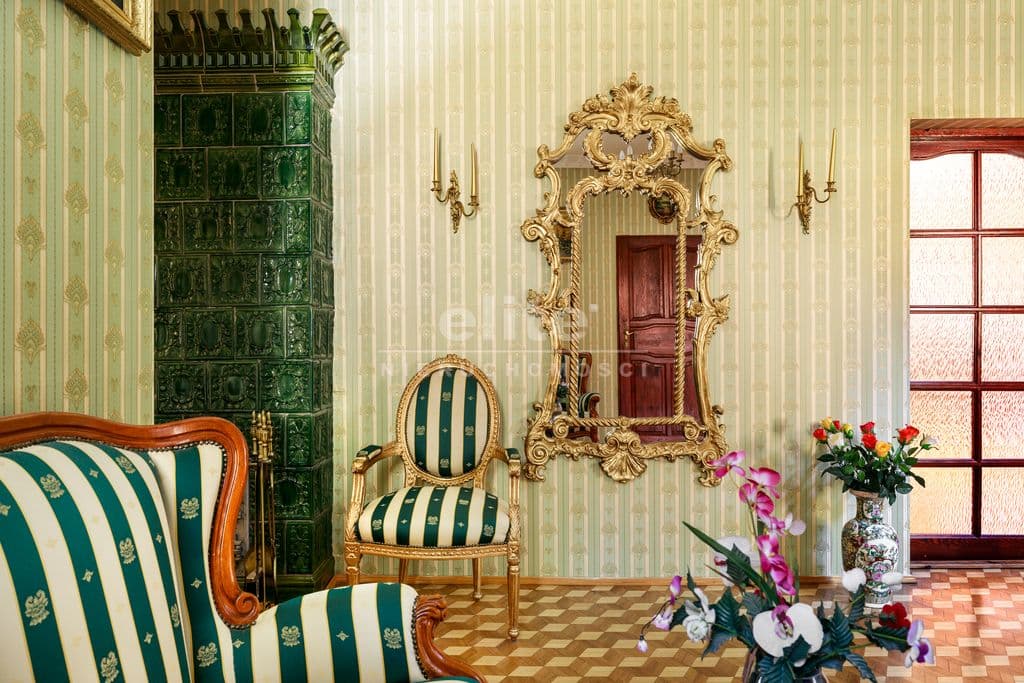 Wnętrza urzekają eleganckim stylem wiktoriańskim – mahoniowe meble, złocone lustra, stylowe tapety oraz drewniane parkiety w geometryczne wzory tworzą unikalny klimat.