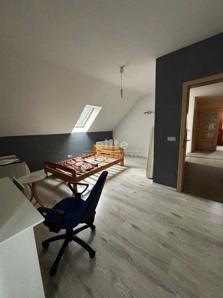 * **Poddasze:** Funkcjonalna przestrzeń, która może pełnić rolę biura, pokoju zabaw lub dodatkowych sypialni. Łącznie w domu znajduje się 5 komfortowych pokoi.