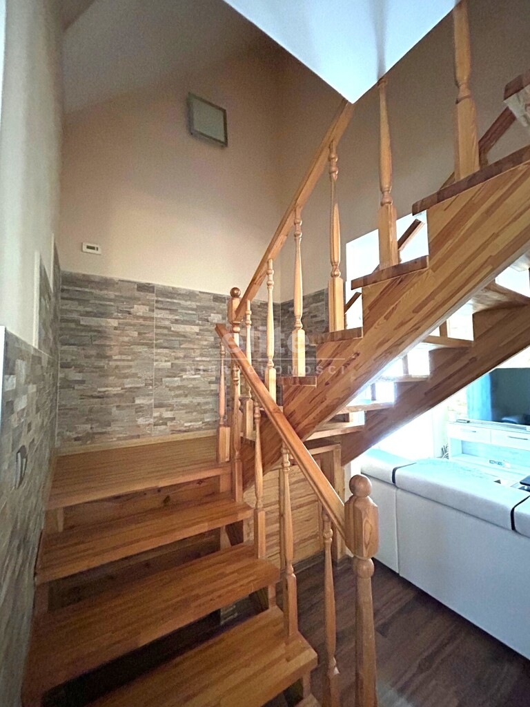Dom nie jest podpiwniczony. Ściany zewnętrzne murowane z cegły Porttherm 25, ocieplone styropianem 12 cm; Dach docieplony wełną mineralną. Okna PCV i połaciowe. Podłoga panele i terakota. Ogrzewanie piec gazowy 2 funkcyjny z zamkniętą komorą spalania. Klimatyzacja, instalacja alarmowa, kominek...., na działce tuje, świerki, brzoza.