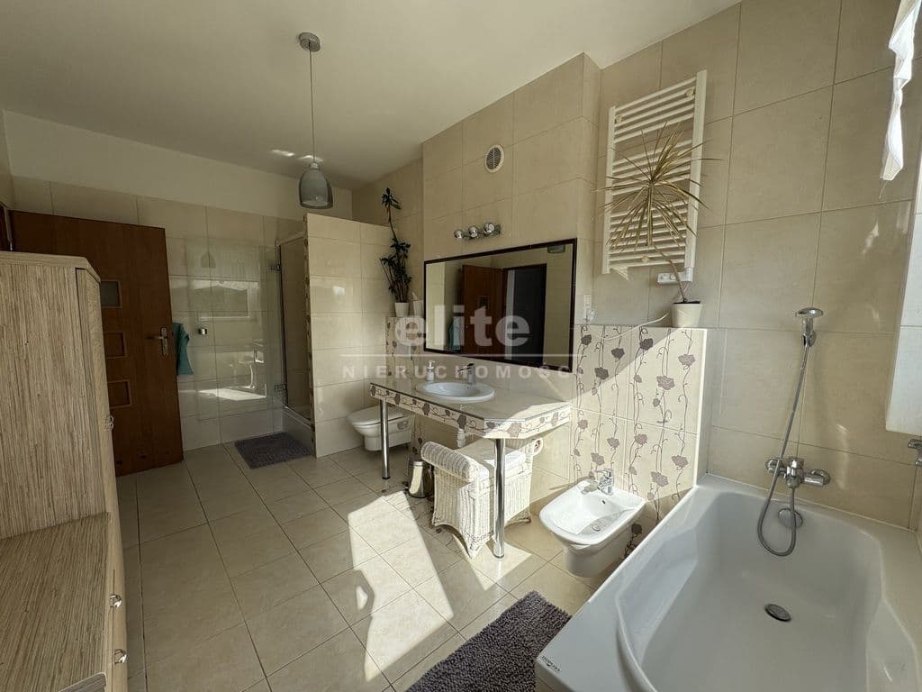Funkcjonalny układ obejmuje przestronny salon oraz 5 sypialni, w tym dwie z prywatnymi garderobami – idealne rozwiązanie dla rodzin lub osób pracujących z domu.