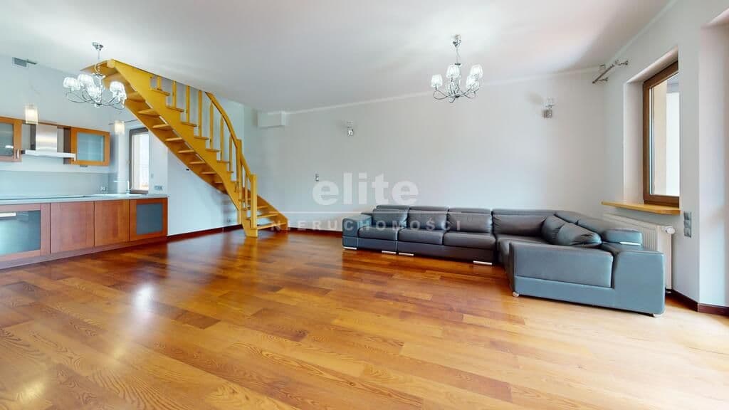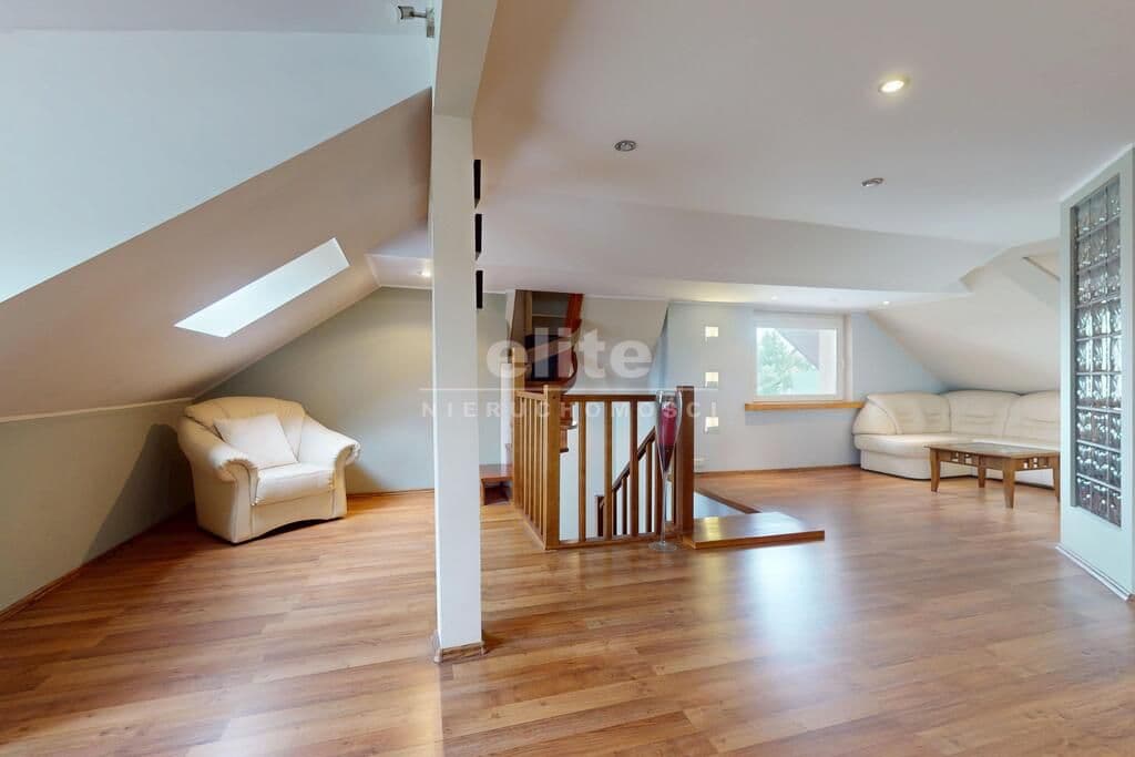 - Duży salon, kuchnia z jadalnią, 2 łazienki, 2 sypialnie, przestrzeń na poddaszu z garderobą