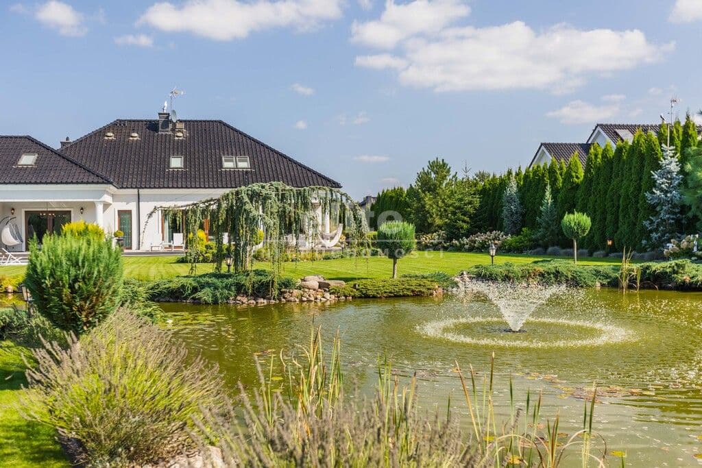 Ogród to osobna opowieść - zaprojektowany przez jedno z najlepszych biur projektowych w Polsce, przypomina małą prywatna oazę. Mamy tu oczko wodne z złotymi rybkami i białymi liliami, spektakularny wodospad z podświetleniem i imponujący staw z ponad setka karpi Koi.