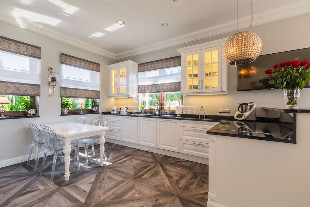 Wnętrze domu to połączenie komfortu, wysokiego standardu i przemyślanej funkcjonalności. Każdy element - od panoramicznych okien z widokiem na ogród, przez meble robione na zamówienie, po armaturę i dodatki od najlepszych światowych marek - został dobrany z dbałością o szczegóły i wygodę codziennego życia.