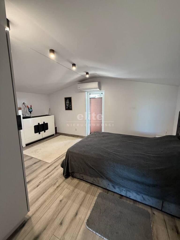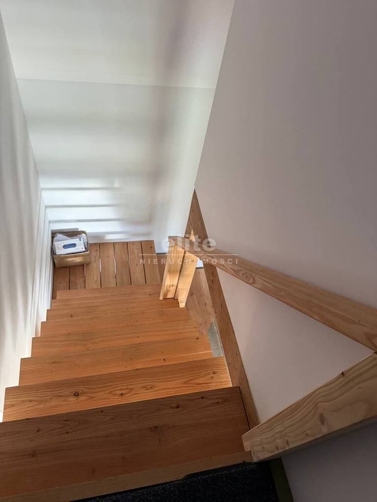 Na parterze położone aneks kuchenny i łazienka z toaletą. Na poddaszu są 2 pokoje i garderoba.