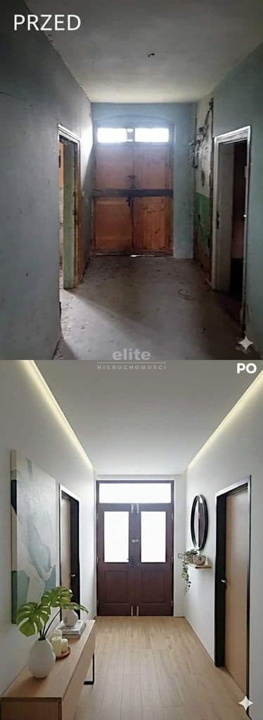 Zdjęcia przedstawiają stan rzeczywisty jak i wizualizację jak mogłyby wyglądać pomieszczenia po remoncie.