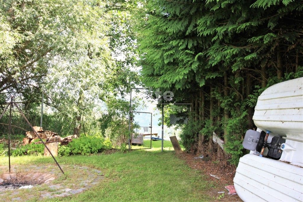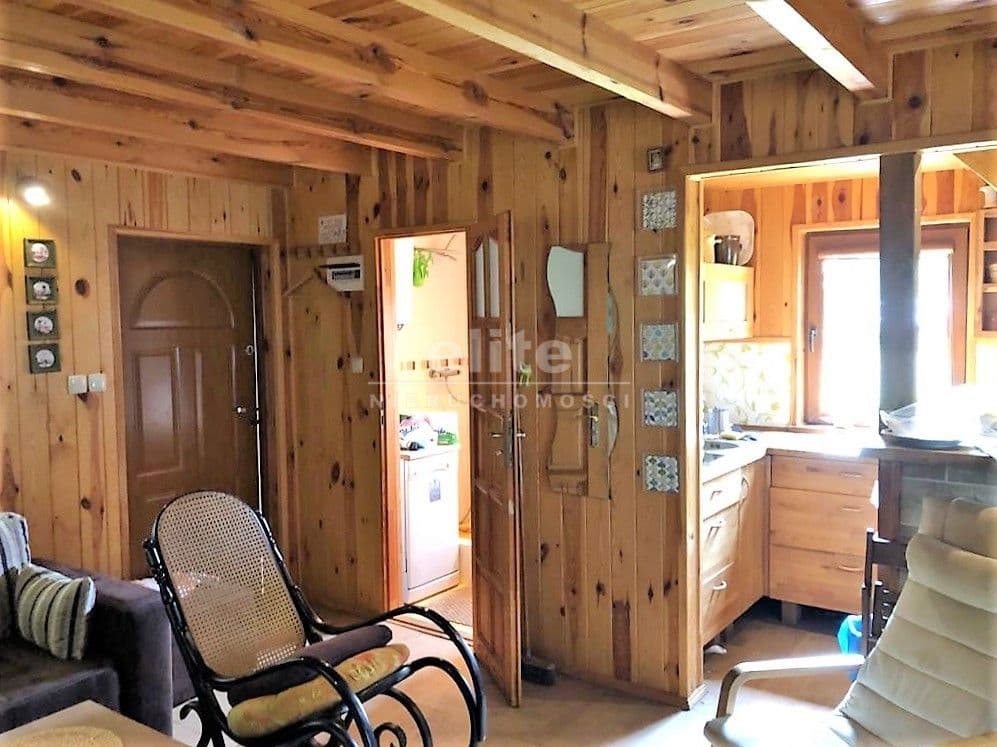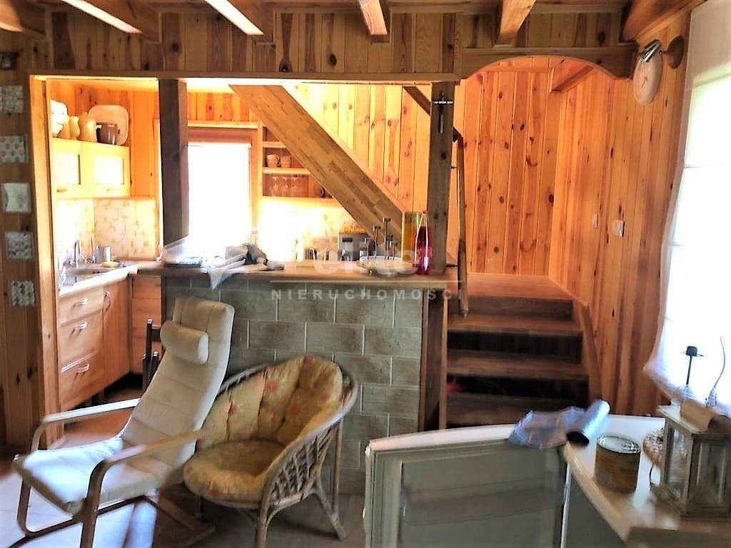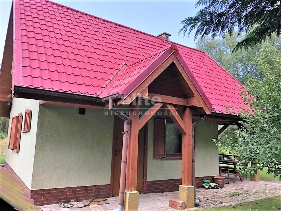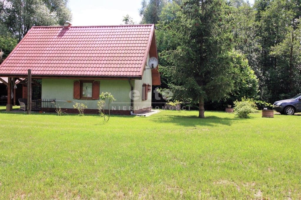 Na działce znajduje się całoroczny domek letniskowy o podstawie 35 m², ogrzewany wydajną kozą norweską, co zapewnia komfort wypoczynku przez cały rok.