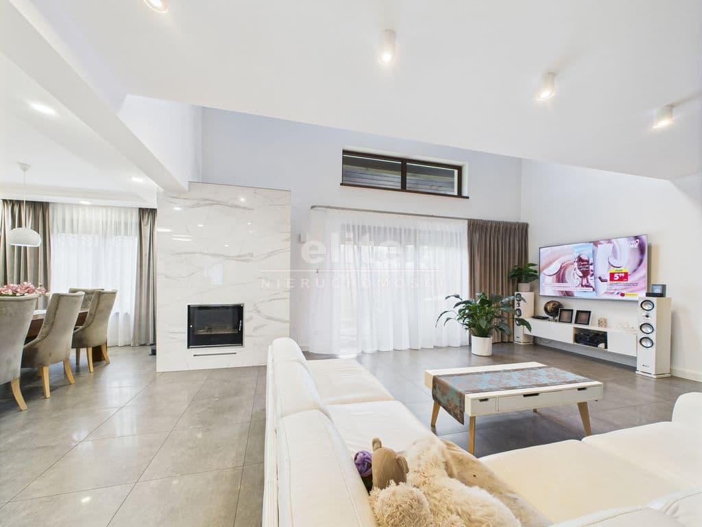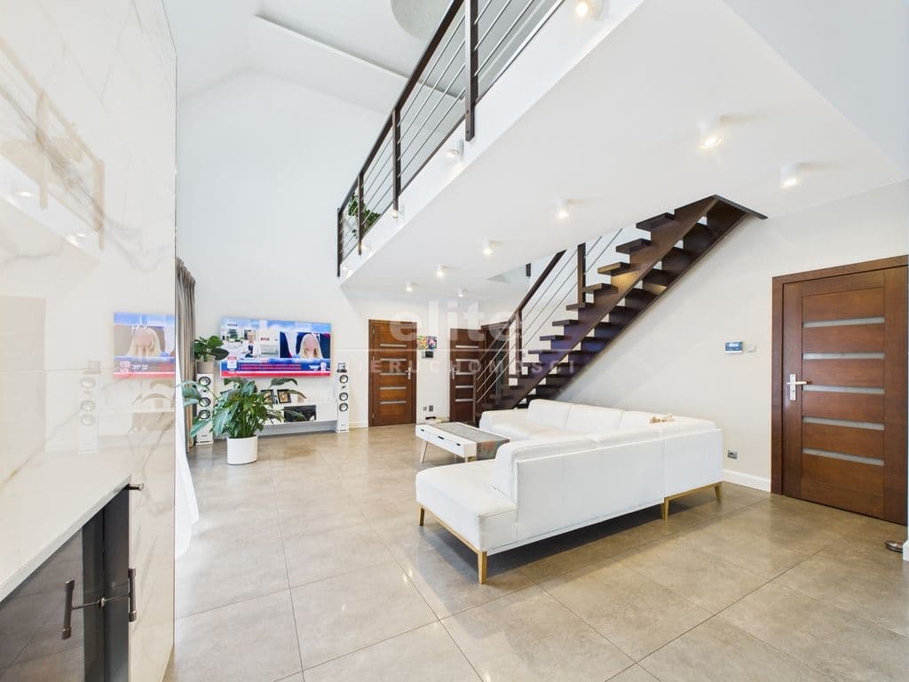 - Jasny i przestronny salon zwieńczony antresolą