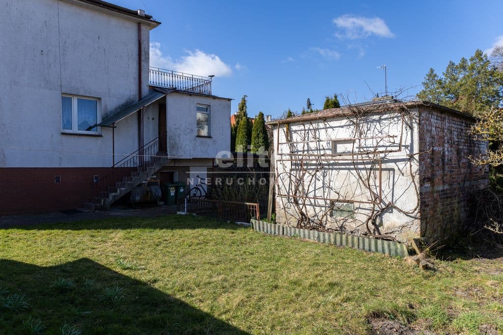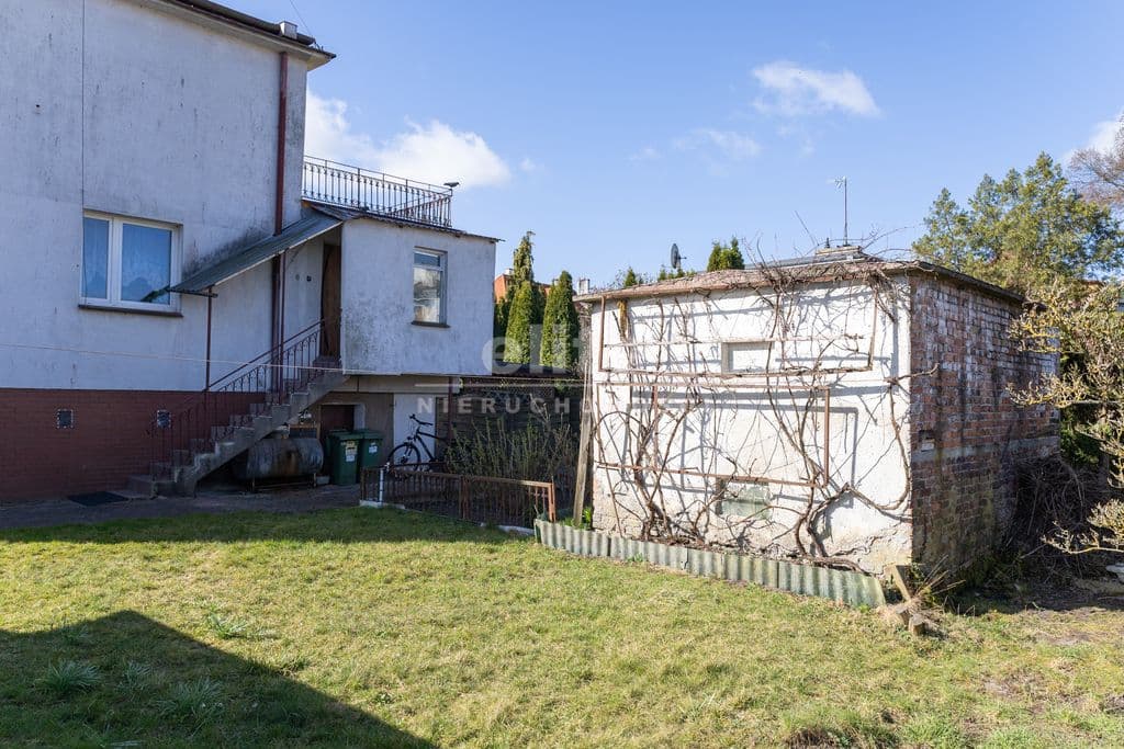 Aktualnie nieruchomość przystosowana jest dla dwóch rodzin, a budynek posiada dwa wejścia. Powierzchnia użytkowa domu to 107 m2 a całkowita 198 m2. W skład budynku wchodzą: