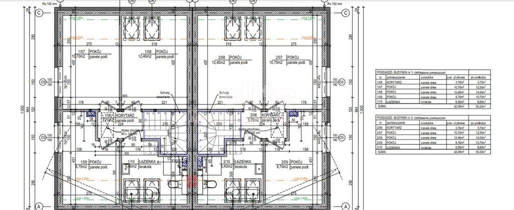* Konstrukcja: ściany zewnętrzne z bloczków betonu komórkowego o grubości 24 cm, ściany działowe 12 cm.