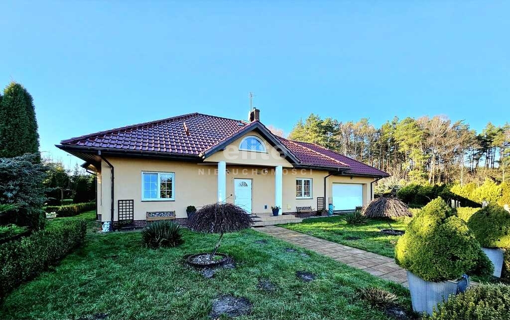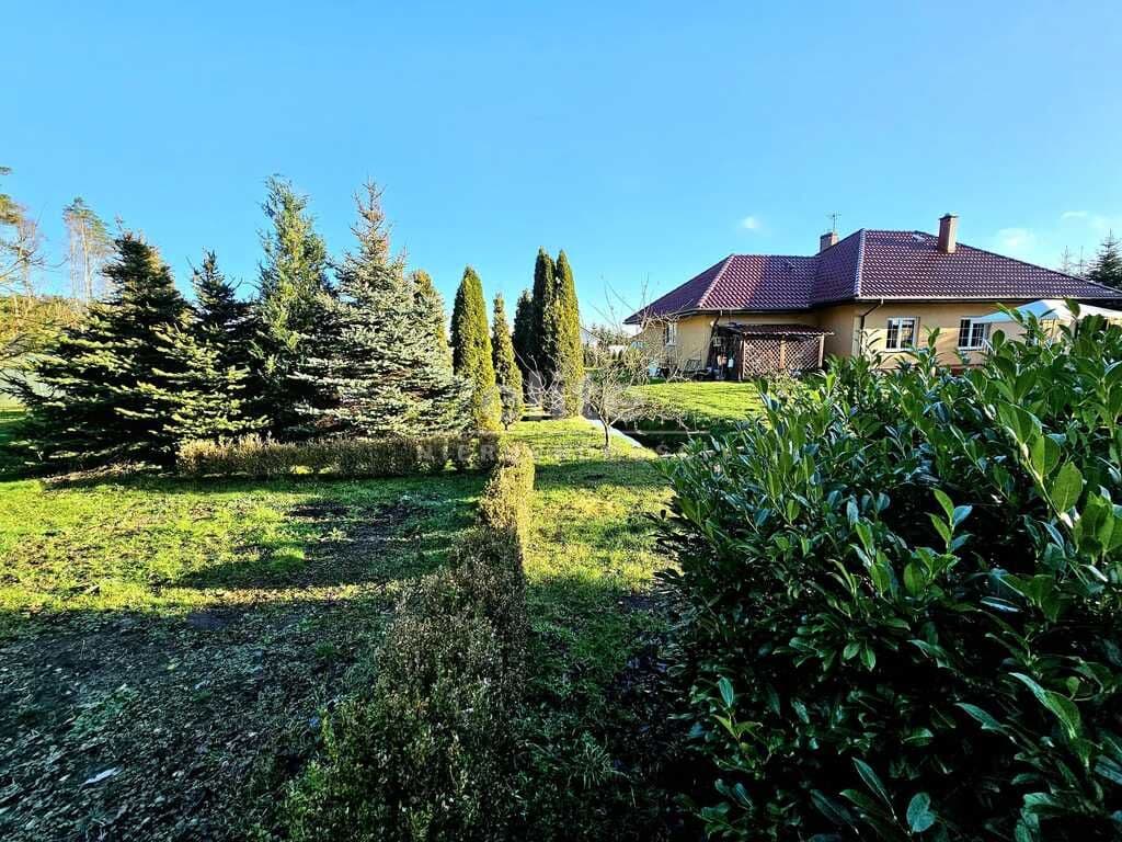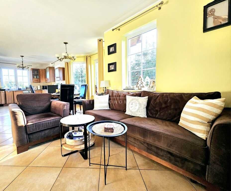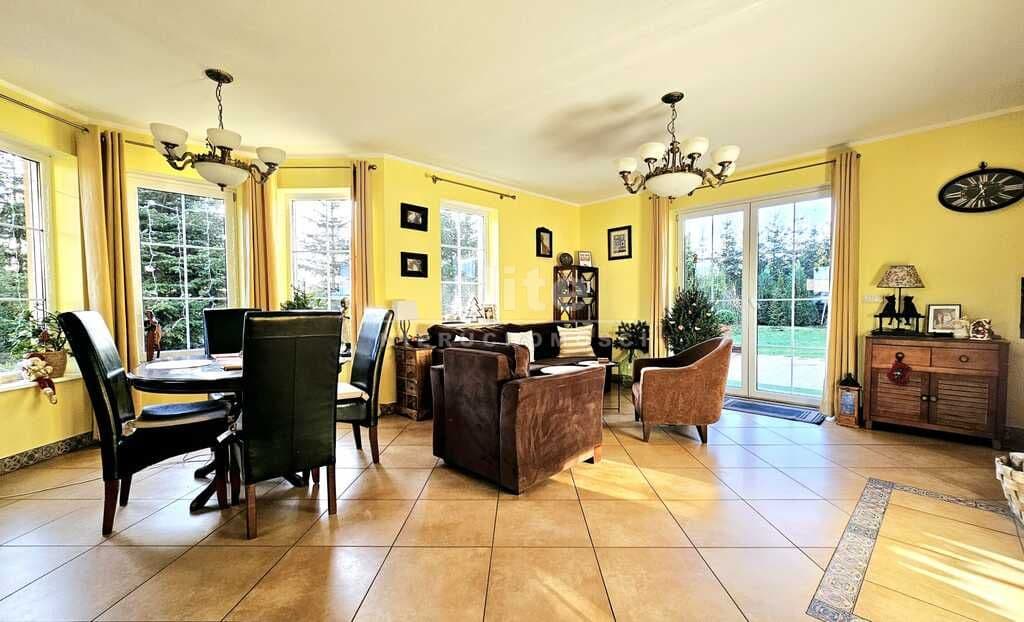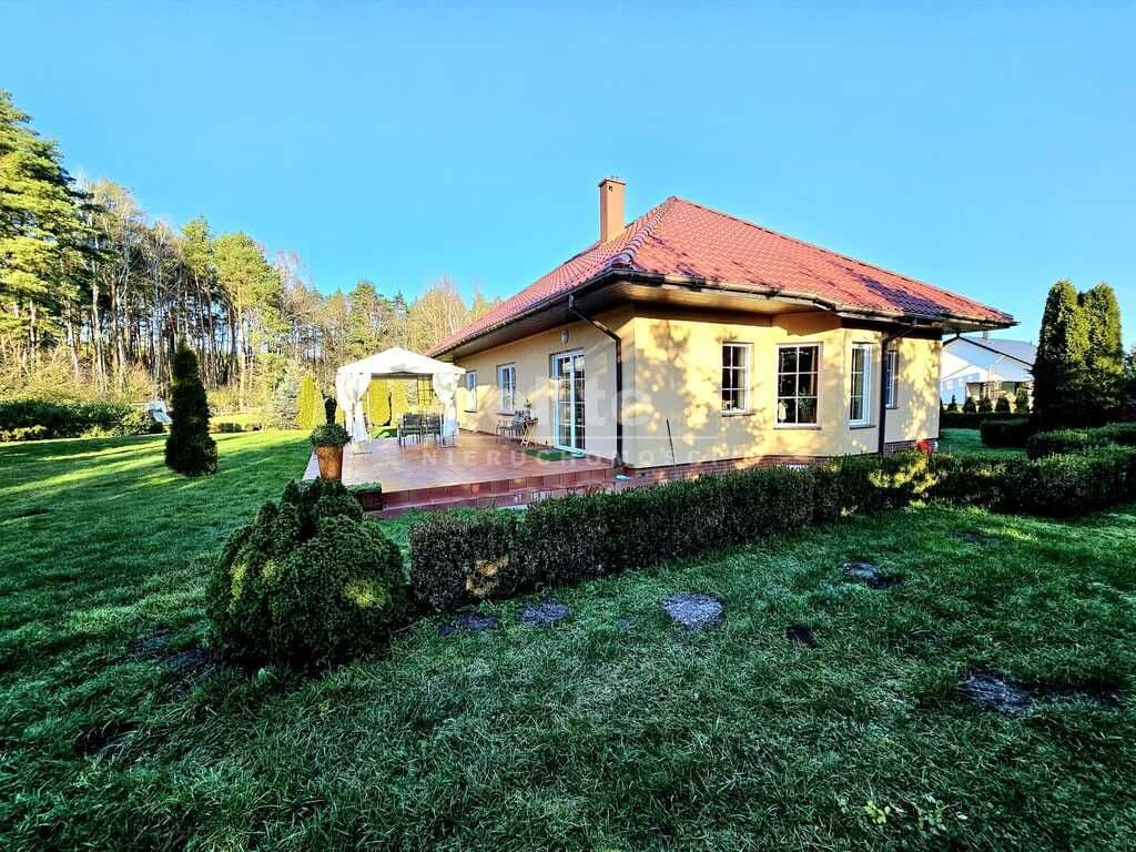 Oferujemy do sprzedaży dom wolnostojący z garażem, usytuowany w malowniczym zakątku Dobrej, bezpośrednio przy ścianie lasu. Nieruchomość położona jest na bardzo dużej działce, o łącznym metrażu około 4300 m2. Dom został wybudowany w 2008 roku z projektu ,,Dom pod Jarząbem (2G)". Powierzchnia użytkowa nieruchomości wynosi 148,9 m2, a całkowita 182,4 m2. Na parterze domu, znajdziemy otwartą kuchnię połączoną z salonem, z którego wychodzi się na duży, zagospodarowany taras i dalej na ogród, 3 sypialnię, łazienkę z WC, pomieszczenie gospodarcze z kolejnym WC oraz korytarz. Poddasze użytkowe aktualnie zamknięte i nieużytkowane (z możliwością zaaranżowania i zamieszkania). Ogrzewanie i ciepła woda zasilane z pieca gazowego. Dodatkowo, możliwość ogrzewania elektrycznego (zainstalowana podłogówka na całej powierzchni domu) oraz z kominka kaflowego. W cenie nieruchomości pozostają wszystkie zabudowy stałe wraz z umeblowaniem kuchennym i łazienkowym, reszta rzeczy do ustalenia. W bryle budynku, również garaż jednostanowiskowy oraz duży, zagospodarowany taras z pergolą, krzesłami i stołem. Największym atutem nieruchomości - lokalizacja - w malowniczym miejscu, pod samą ścianą lasu oraz bardzo duża działka (około 4300m2). Na jej terenie 2 duże szklarnie, krzewy z borówką amerykańską oraz oczko wodne z wieloma nasadzeniami. Podlewanie ogrodu sterowane elektronicznie. Cicha okolica, zapewniająca spokój i relaks jej mieszkańcom, a w sąsiedztwie jedynie zabudowa jednorodzinna i bliźniacza. Idealne miejsce dla osób ceniących ciszę, spokój oraz prywatność lub pod inwestycję, z uwagi na bardzo dużą działkę.