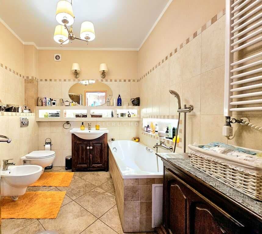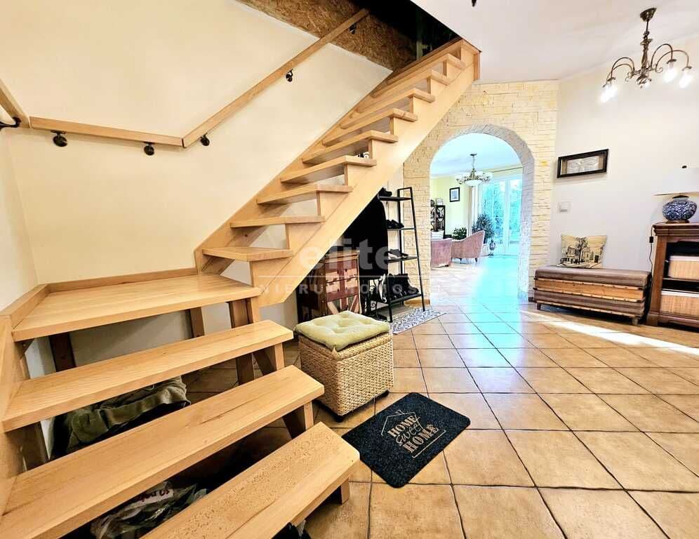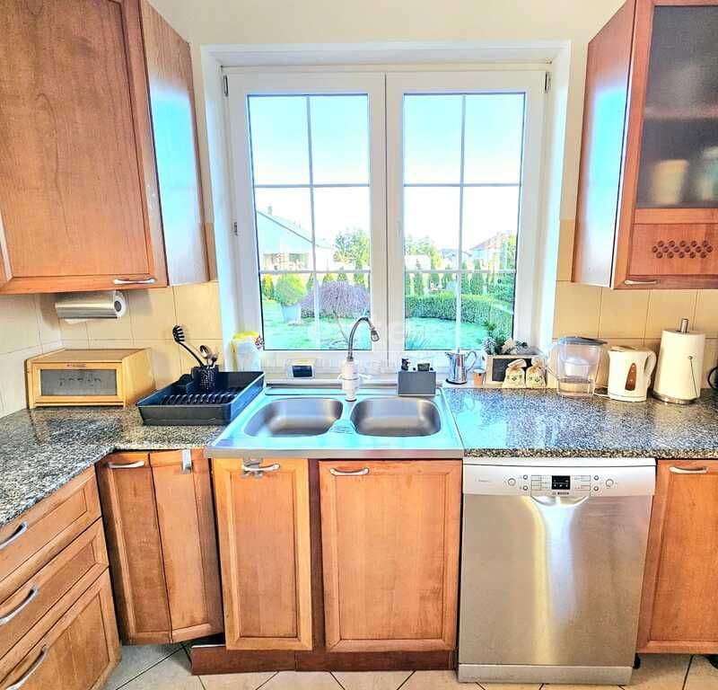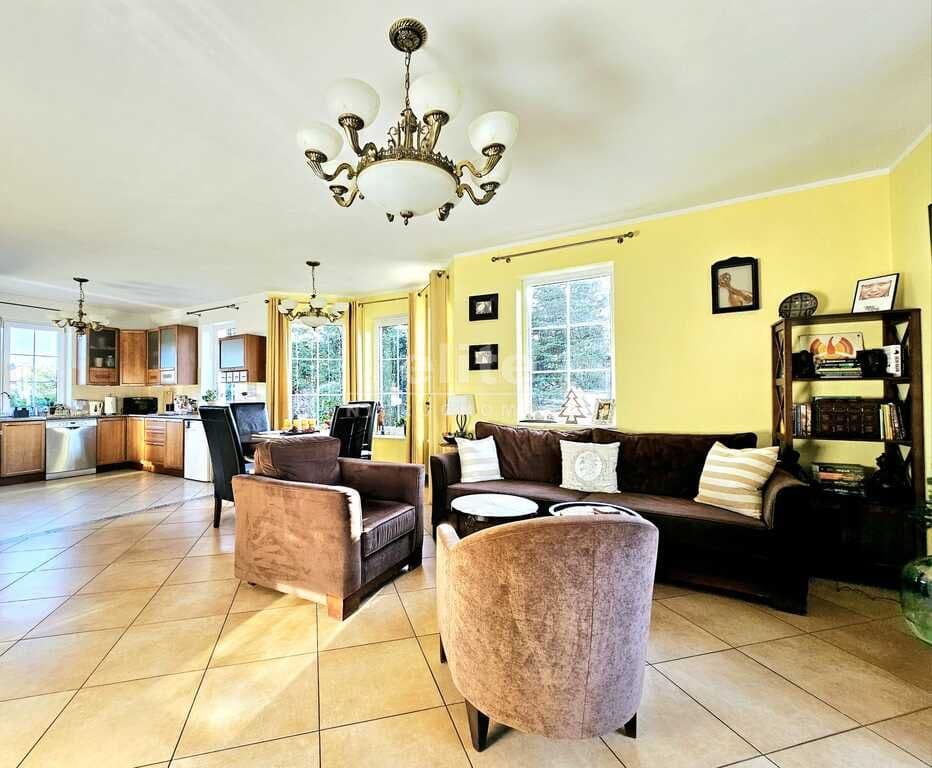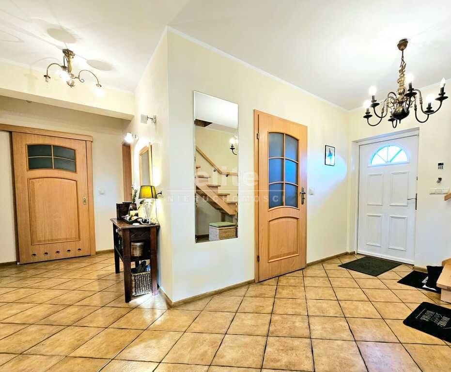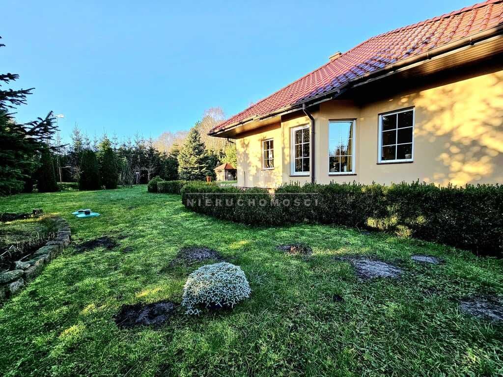 Oferujemy do sprzedaży dom wolnostojący z garażem, usytuowany w malowniczym zakątku Dobrej, bezpośrednio przy ścianie lasu. Nieruchomość położona jest na bardzo dużej działce, o łącznym metrażu około 4300 m2. Dom został wybudowany w 2008 roku z projektu ,,Dom pod Jarząbem (2G)". Powierzchnia użytkowa nieruchomości wynosi 148,9 m2, a całkowita 182,4 m2. Na parterze domu, znajdziemy otwartą kuchnię połączoną z salonem, z którego wychodzi się na duży, zagospodarowany taras i dalej na ogród, 3 sypialnię, łazienkę z WC, pomieszczenie gospodarcze z kolejnym WC oraz korytarz. Poddasze użytkowe aktualnie zamknięte i nieużytkowane (z możliwością zaaranżowania i zamieszkania). Ogrzewanie i ciepła woda zasilane z pieca gazowego. Dodatkowo, możliwość ogrzewania elektrycznego (zainstalowana podłogówka na całej powierzchni domu) oraz z kominka kaflowego. W cenie nieruchomości pozostają wszystkie zabudowy stałe wraz z umeblowaniem kuchennym i łazienkowym, reszta rzeczy do ustalenia. W bryle budynku, również garaż jednostanowiskowy oraz duży, zagospodarowany taras z pergolą, krzesłami i stołem. Największym atutem nieruchomości - lokalizacja - w malowniczym miejscu, pod samą ścianą lasu oraz bardzo duża działka (około 4300m2). Na jej terenie 2 duże szklarnie, krzewy z borówką amerykańską oraz oczko wodne z wieloma nasadzeniami. Podlewanie ogrodu sterowane elektronicznie. Cicha okolica, zapewniająca spokój i relaks jej mieszkańcom, a w sąsiedztwie jedynie zabudowa jednorodzinna i bliźniacza. Idealne miejsce dla osób ceniących ciszę, spokój oraz prywatność lub pod inwestycję, z uwagi na bardzo dużą działkę.