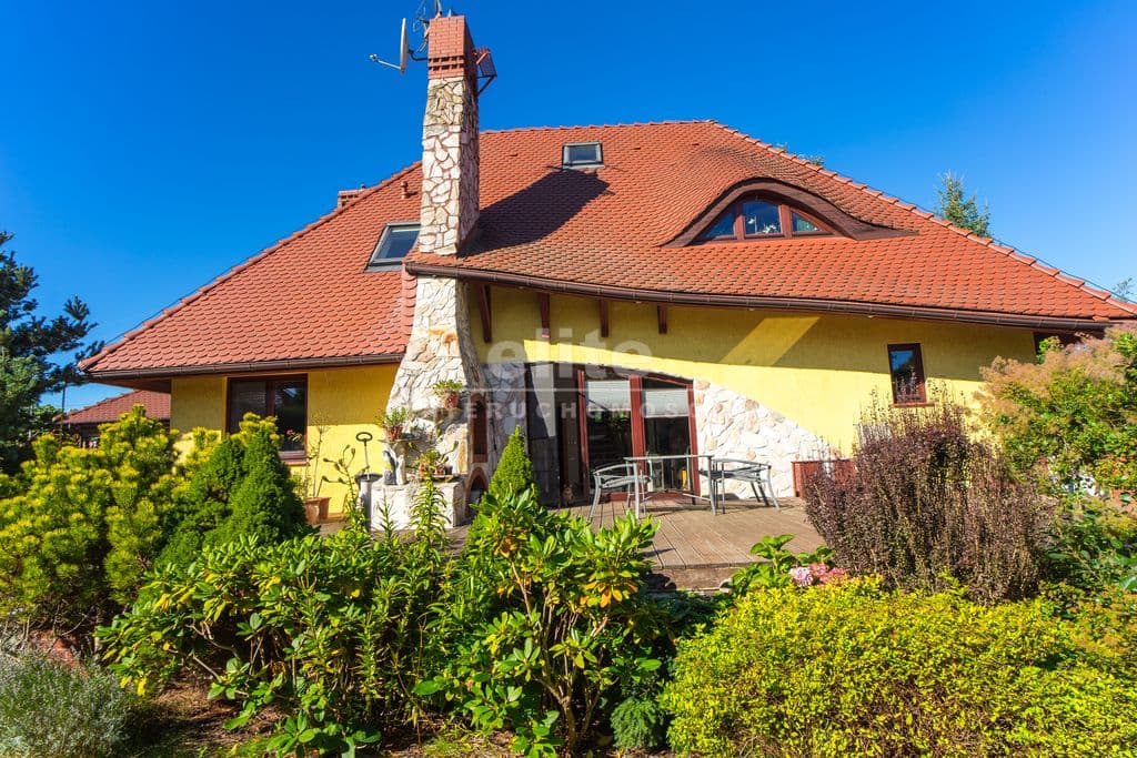Działka zagospodarowana z wydzieloną częścią warzywną, gospodarczą i zadbanym oczkiem wodnym. Duży taras z zewnętrznym kominkiem. Automatyczna brama wjazdowa na wyłożony kostką podjazd z kilkoma miejscami parkingowymi. Garaż dwustanowiskowy z oddzielnym pomieszczeniem gospodarczym.