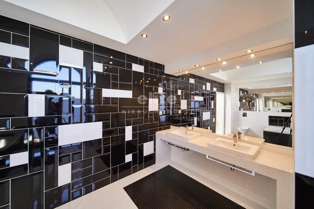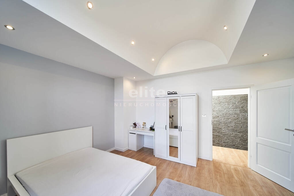 Na piętrze znajduje się strefa prywatna: główna sypialnia z prywatną łazienką i garderobą, kilka dodatkowych pokoi, przestronna bawialnia, a także niezależne mieszkanie z aneksem kuchennym i łazienką.