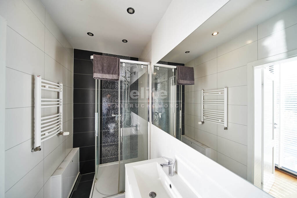 Na parterze czeka na Ciebie imponująca strefa dzienna – przestronny salon z kominkiem, jadalnia, elegancka kuchnia, sala kinowa oraz dodatkowy pokój i łazienka. Całość doświetlona dużymi oknami z wyjściem na taras – idealny do porannej kawy lub wieczornego wina.