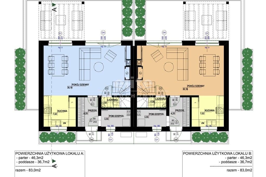 * Powierzchnia użytkowa: Dom oferuje 83 m² optymalnie zaprojektowanej przestrzeni, podzielonej na dwie strefy: