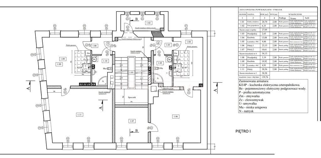Nowe instalacje: Całkowicie nowa instalacja elektryczna (trójfazowa w każdym mieszkaniu), wodno-kanalizacyjna oraz internetowa.