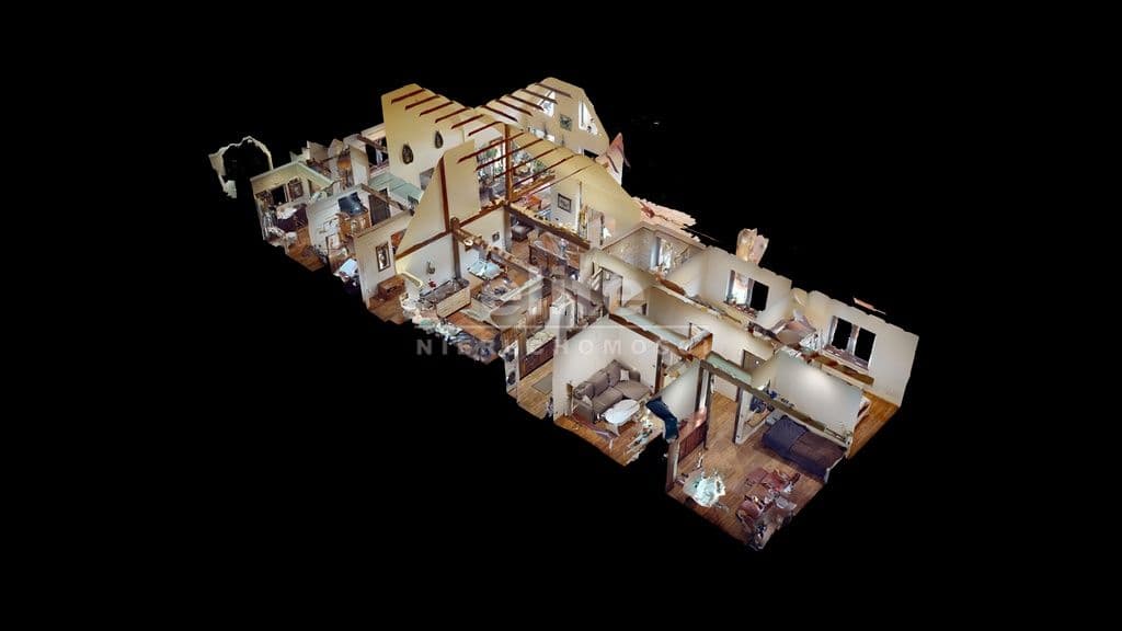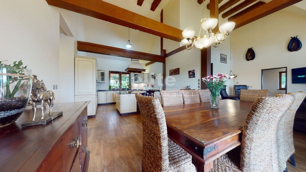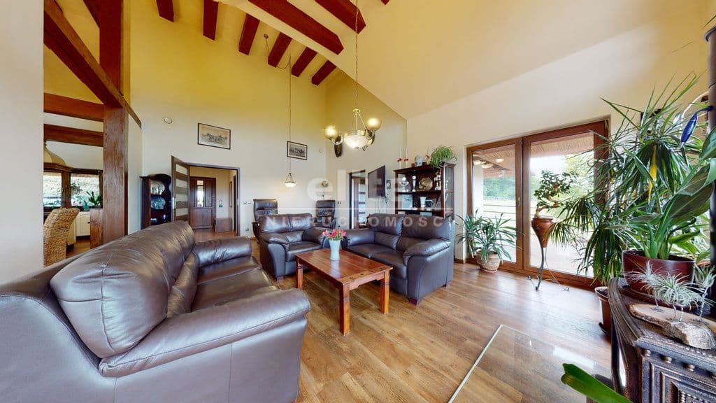 Powierzchnię użytkową domu 162 m2 tworzą obszerny salon wraz z kuchnią i jadalnią 62,50 m2, sypialnia 10,55 m2, gabinet 9,55 m2, cztery pokoje ( 5,50/ 9,18/ 15,20/ 9, 18 m2), dwie łazienki ( 6,53/ 6,1 m2), garderoba, pomieszczenia techniczne oraz komunikacja (foto). Dom ogrzewany jest z pieca termalnego -pompa ciepła, zużycie energii elektrycznej - fotowoltaika.