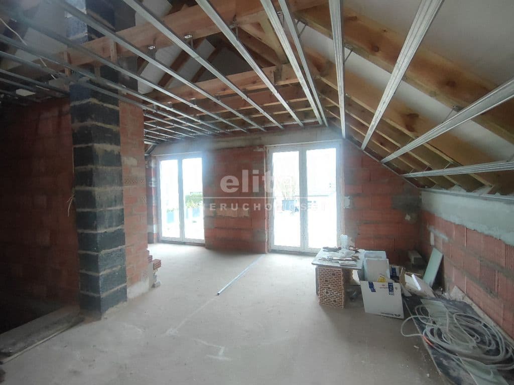 Na obecnym etapie budowy można dokonać własnej aranżacji przestrzeni i wykończenia domu - obecnie poddasze bez ścianek działowych.