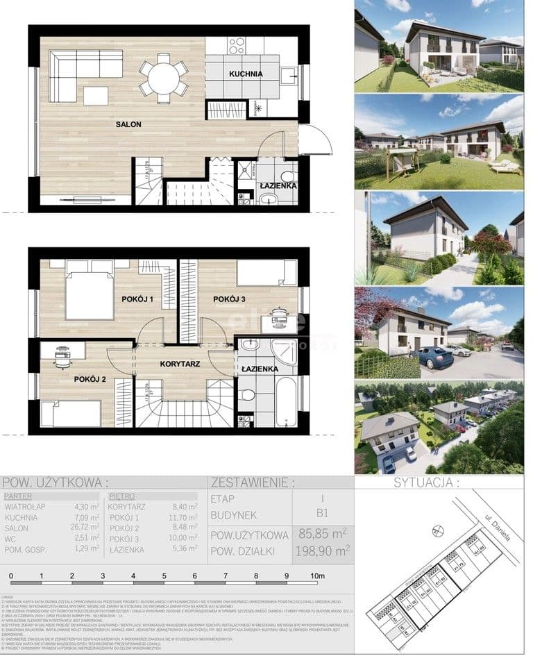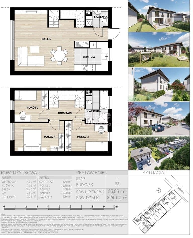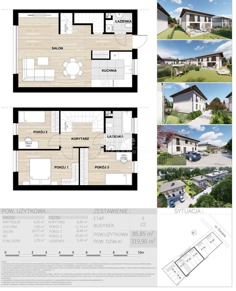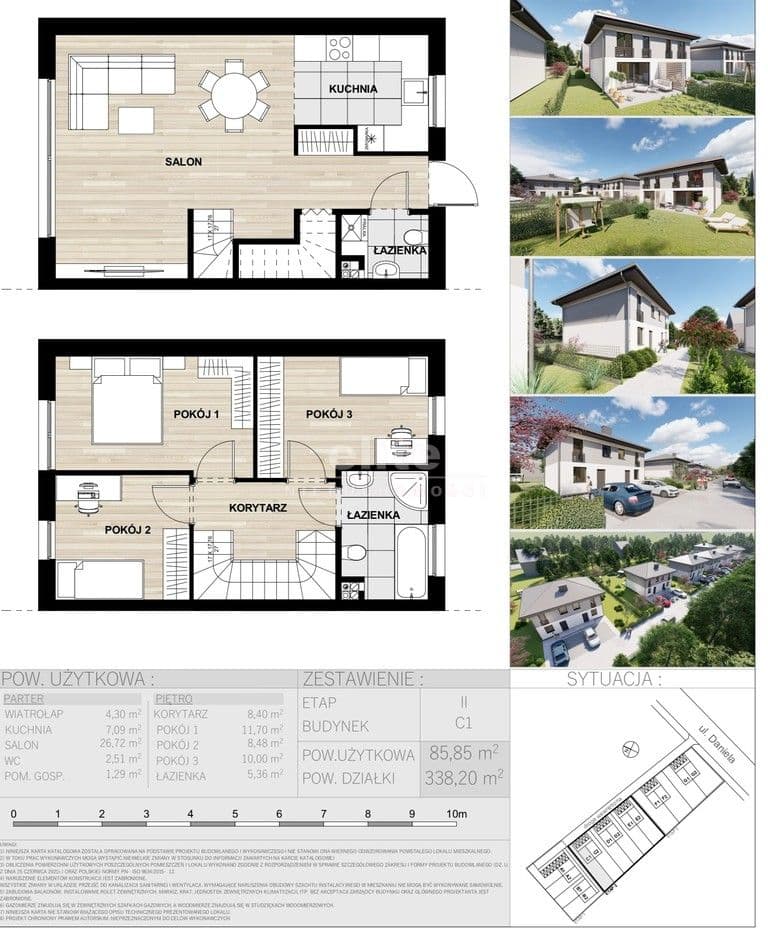 Lokale będą miały powierzchnię użytkową ok. 85,85 m2 na którą będą składać się 2 pełne kondygnacje - parter oraz piętro bez skosów. Dodatkowo do każdego mieszkania przynależeć będzie ogródek oraz dwa miejsca parkingowe na wyłączność.