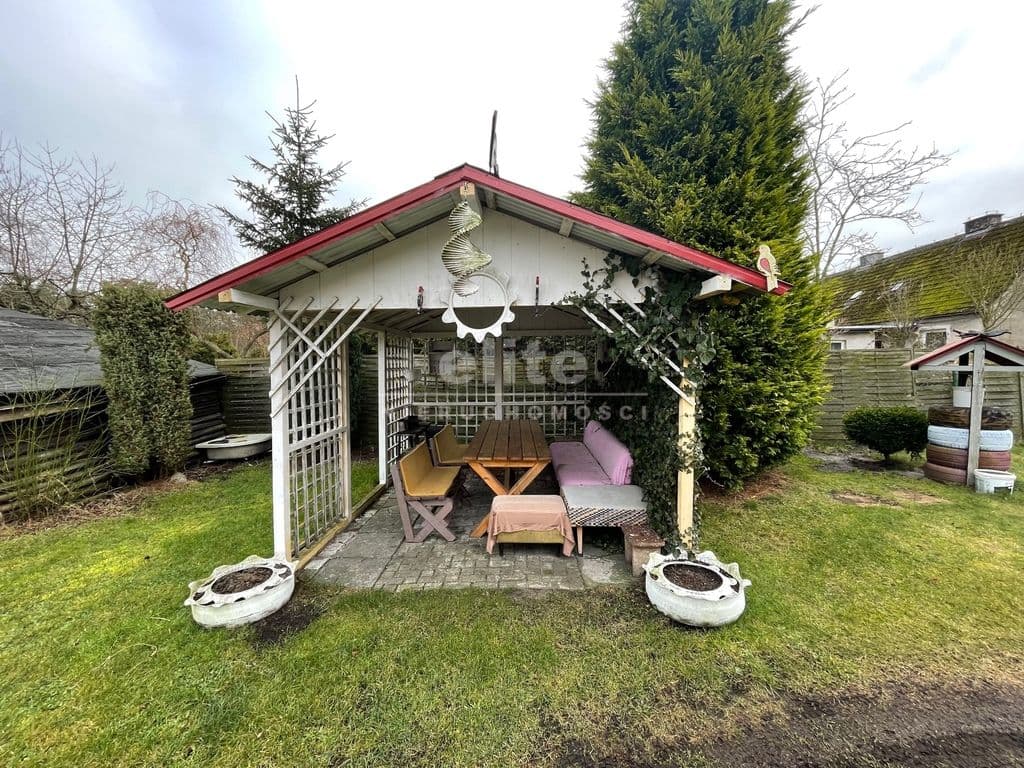 Działka o powierzchni 758 m² jest zagospodarowana i ogrodzona. Znajdują się na niej: