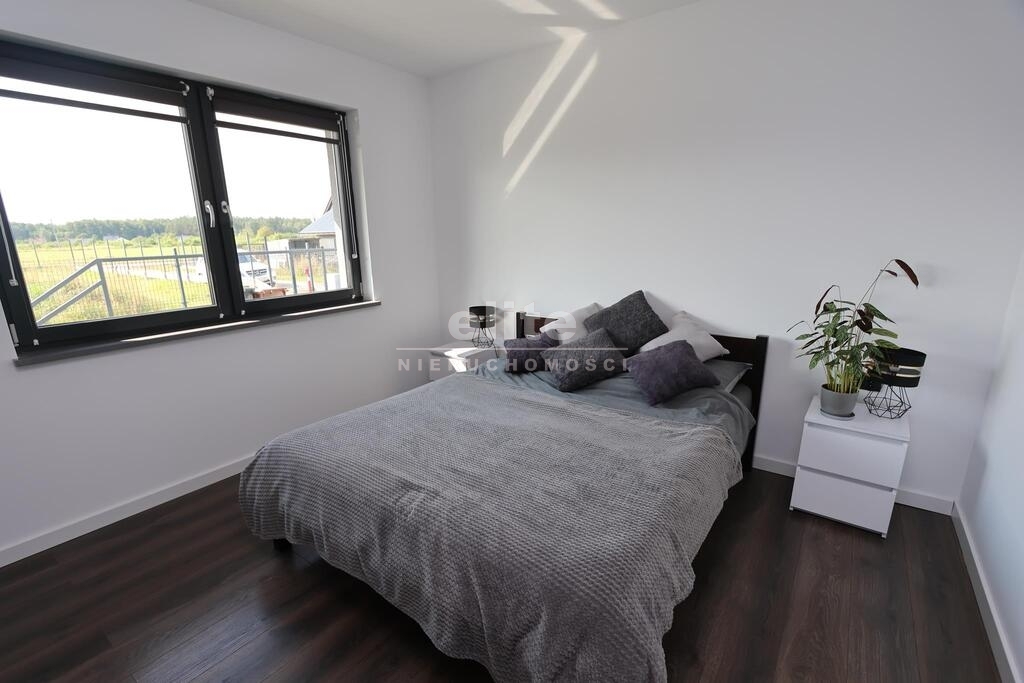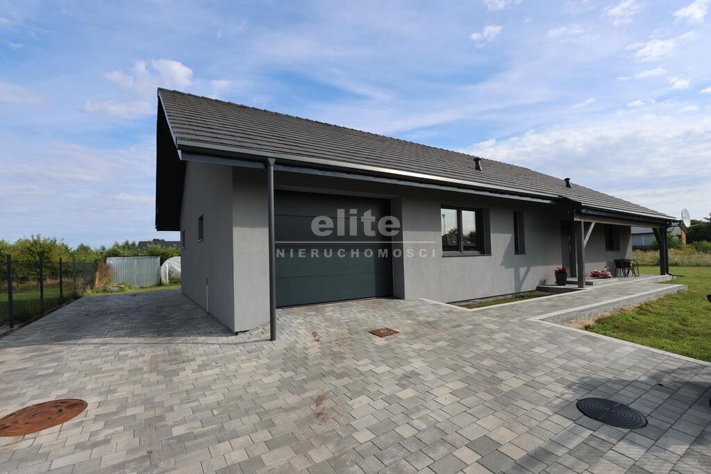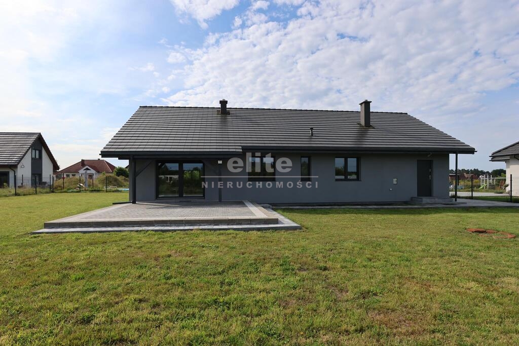 Dom parterowy o pow. użytkowej 109,80 m² (salon z aneksem kuchennym i jadalnią + 3 pokoje, 2 łazienki, garderoba), położony na osiedlu domów jednorodzinnych, w niedalekiej odległości od lasu. Dojazd drogą prywatną utwardzoną. To doskonała nieruchomość dla rodziny 2+2.