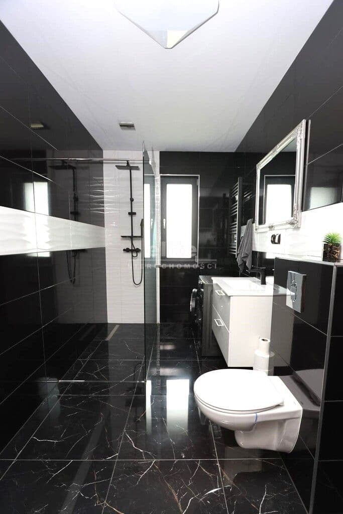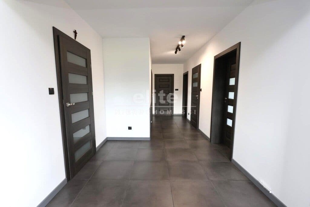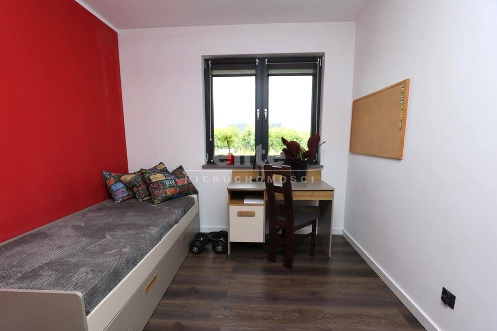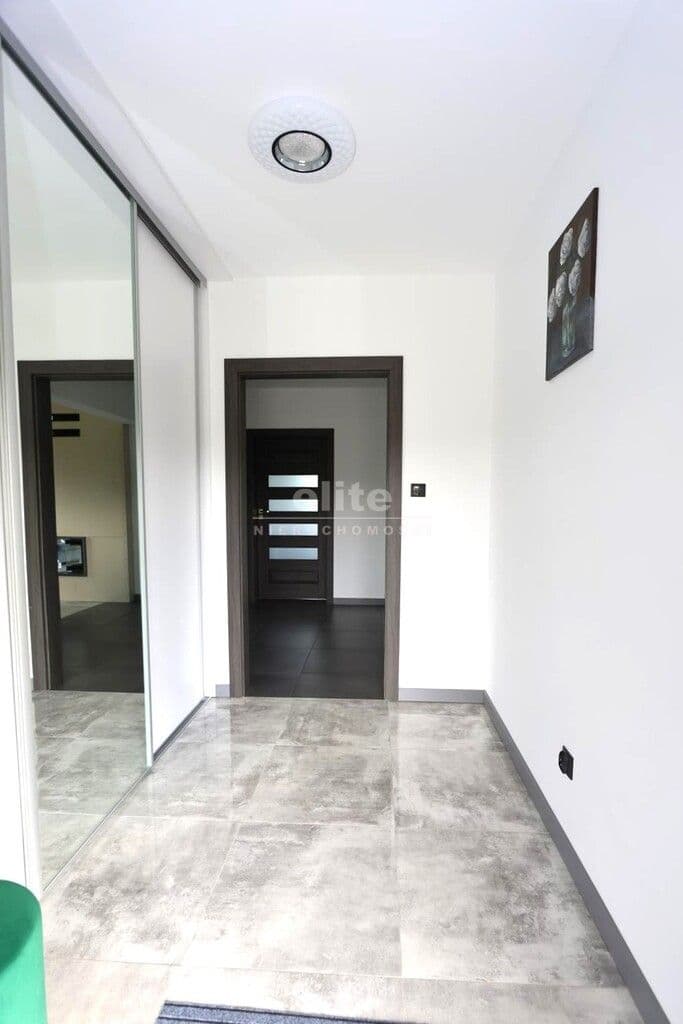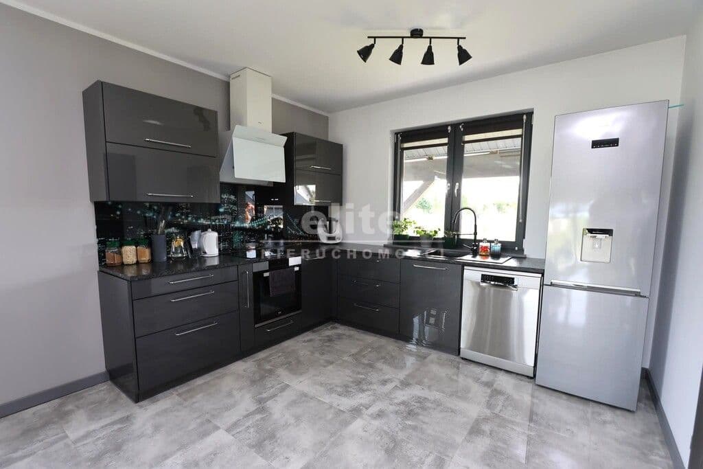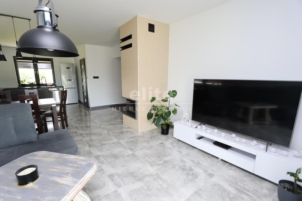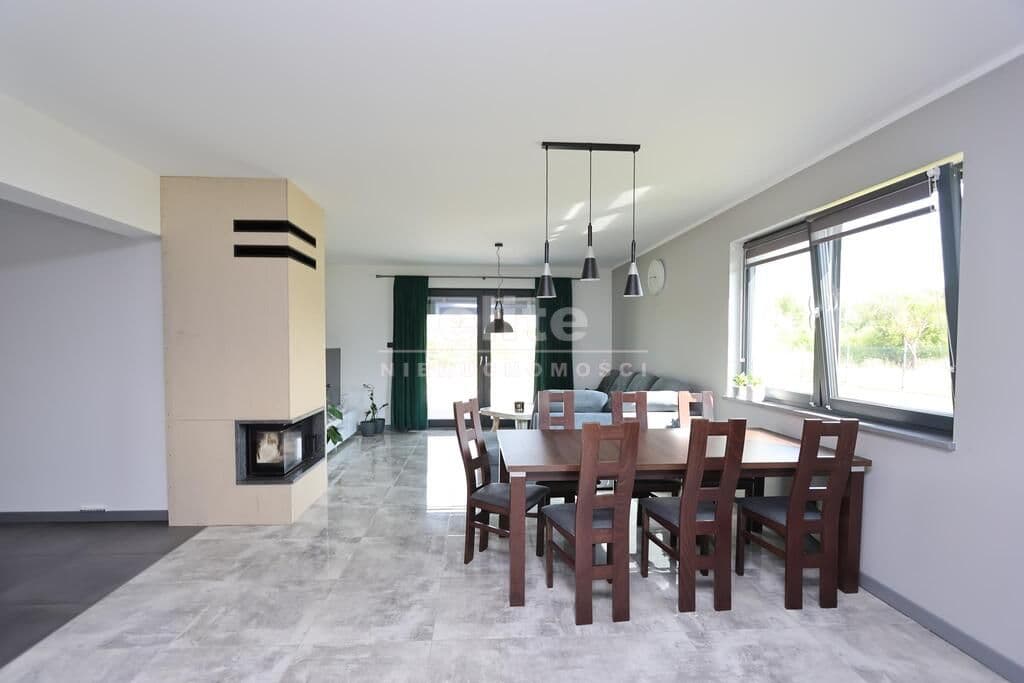 Dom parterowy o pow. użytkowej 109,80 m² (salon z aneksem kuchennym i jadalnią + 3 pokoje, 2 łazienki, garderoba), położony na osiedlu domów jednorodzinnych, w niedalekiej odległości od lasu. Dojazd drogą prywatną utwardzoną. To doskonała nieruchomość dla rodziny 2+2.