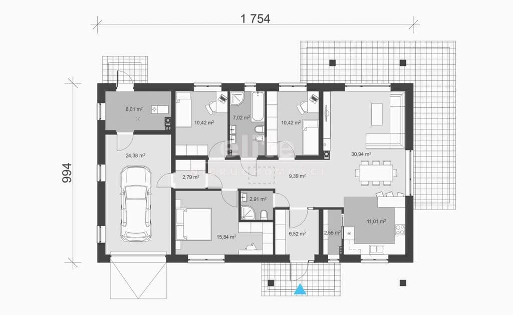 Dom składa się z następujących pomieszczeń: