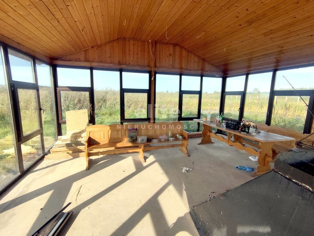 Na tym terenie znajduje się też duża przeszklona altana oraz budynek gospodarczy.