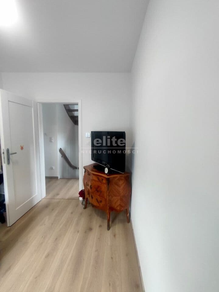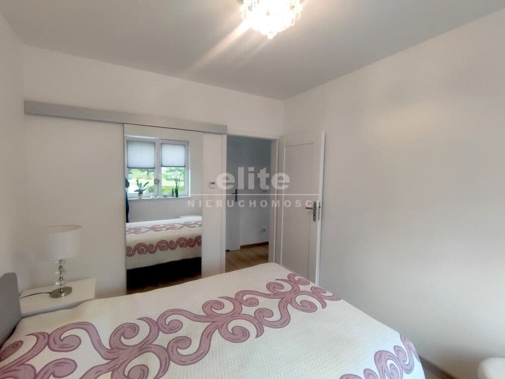 W sypialniach panele, ściany malowane. W jednaj sypialni garderoba ze szklanymi przesuwnymi drzwiami.