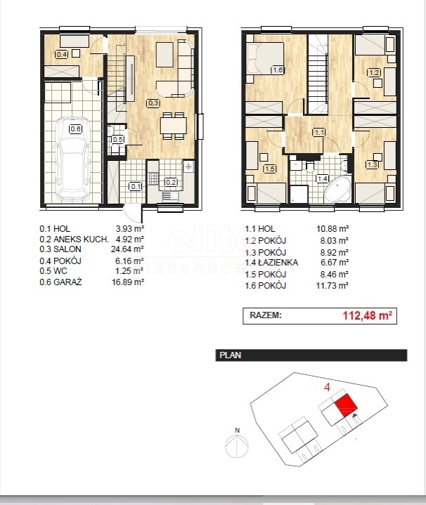 Nieruchomość posiada garaż w bryle budynku o pow. ok. 17 m2.