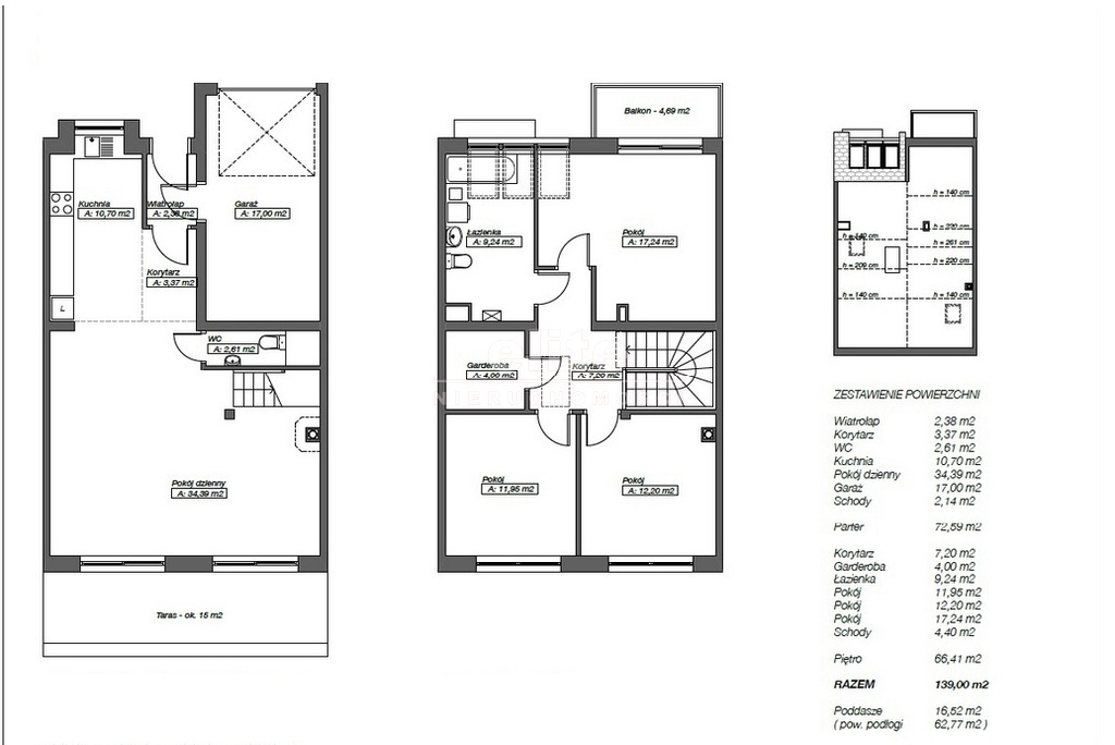 - garaż o powierzchni 17,00 m2,