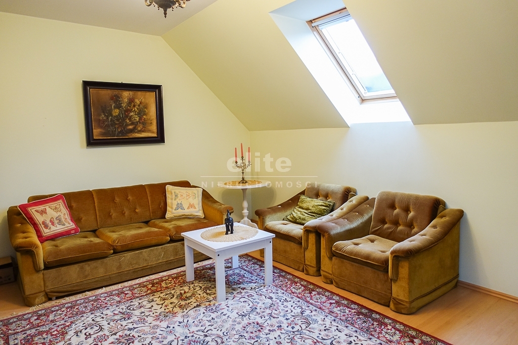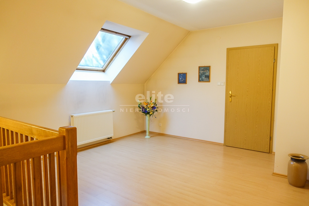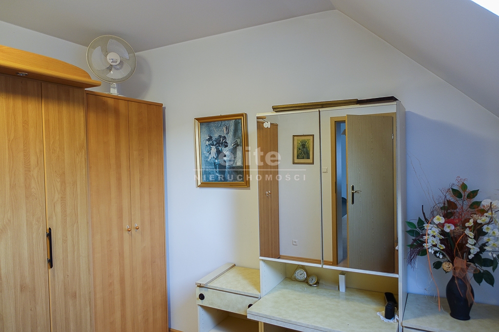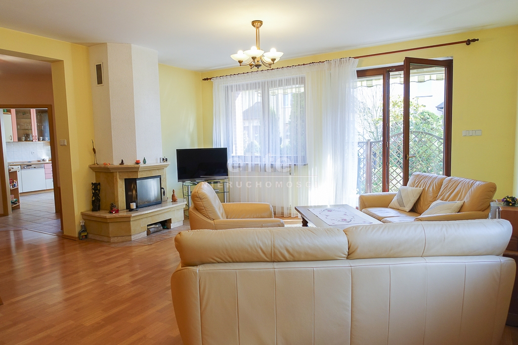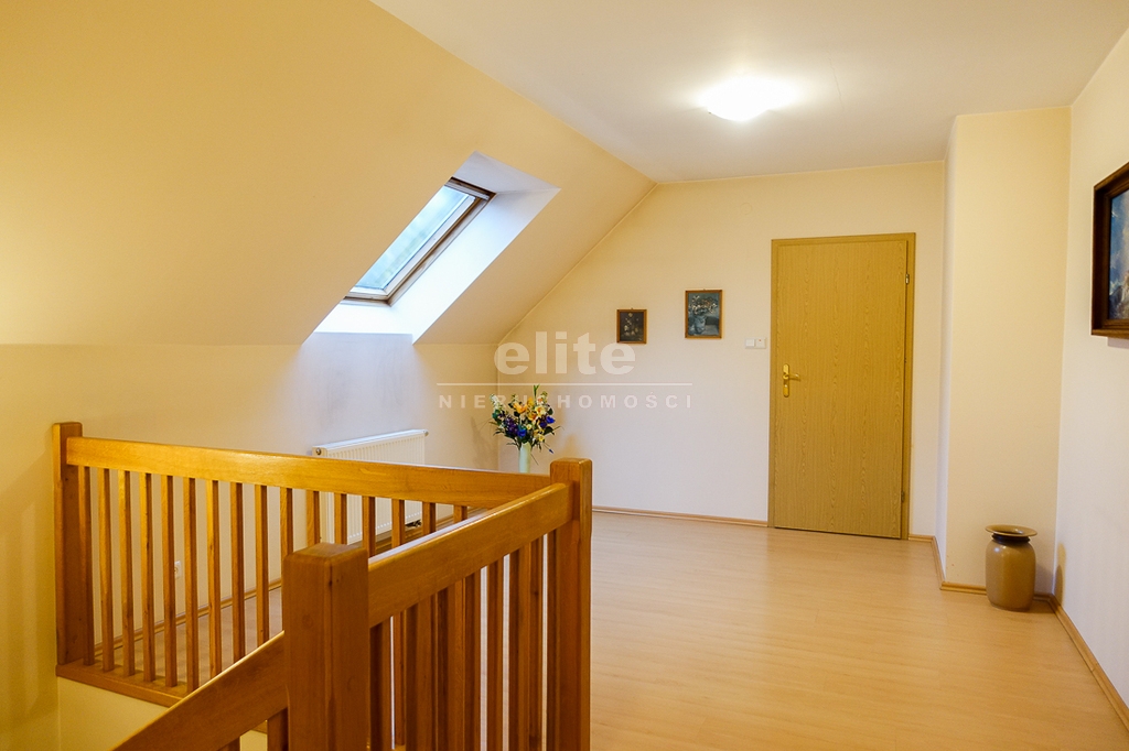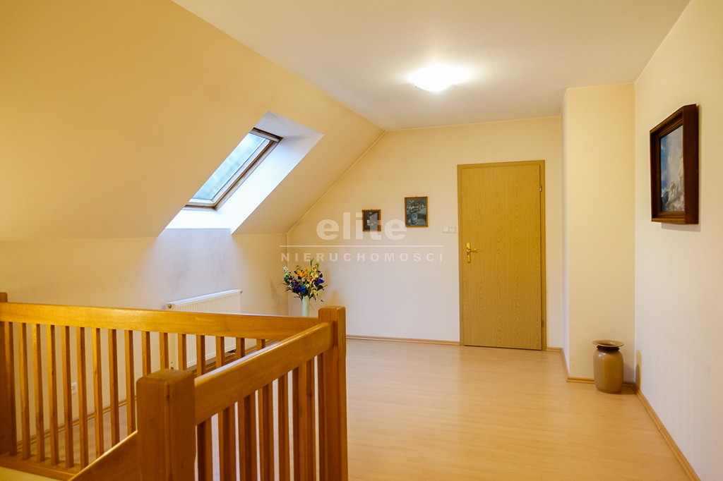 For sale is a detached house, built in 2000, very comfortable and functional. It is situated in a unique, intimate location in Gumieńce, on a very quiet street, surrounded by lush greenery and other single-family homes and green recreational areas. The area is located on Huzarów, Niepołomicka, and Tyniecka streets. The house has good access to public transportation. It is ideal for a multi-generational family. A family atmosphere was a priority in creating the house, which is evident in the thoughtful, friendly layout. Thanks to large windows on the ground floor, the interiors are full of natural light, emphasizing the open character of the house. The house was carefully planned with the family in mind, creating ideal conditions for relaxation and work. GROUND FLOOR (93.5 m²): * Hall (10.5 m²) - open to the living room, with entrances to the kitchen, guest toilet, technical rooms, and the attic. * The living room (32 m²) features a fireplace and double doors leading to a terrace (16 m²) surrounded by greenery, an ideal place for relaxation, and beyond to a garden with trees and shrubs. The living room opens to the hall. * The heart of the house is the spacious, bright kitchen (13.5 m²) - square in shape, with a window, whose soft lighting creates a cozy atmosphere, making cooking a real pleasure and conducive to family gatherings. Practical built-in furniture with appliances: refrigerator, 60 cm Whirlpool dishwasher, electric stove with ceramic hob and Amica oven, extractor hood), table and chairs. * Guest toilet (2.6 m²) - toilet with sink. FIRST FLOOR (88 m²): * Bedroom 24.5 m² (27.3 m² floor area)) with the convenience of a spacious wardrobe with a window, * Wardrobe 9 m² (11.5 m² floor area) * Room 16 m² (20.4 m² floor area) * Room 9.5 m² (12.7 m² floor area) * Lounge 18.5 m² (20 m² floor area) with a roof window, possibility of creating a common computer area * Bathroom 11.1 m² (13.5 m² floor area) with a bathtub, washbasin, toilet and bidet, with the possibility of installing a shower cabin, roof window. * Small wardrobe with sloping ceilings without a window. On the first floor, the bedrooms and rooms have full-size and roof windows. ATTIC: Access from the first floor hall via a drop-down staircase. Three storage rooms with roof windows. The roof is insulated, and the ceiling above the first floor is insulated. The attic height at its highest point is 2.65 m. The technical rooms are located on the ground floor, separate from the living area: * Laundry room (10.5 m²) with bathtub and washing machine, Buderus gas condensing boiler (replaced 3 years ago), and hot water tank (118 liters) * Pantry (5.2 m²) with an additional refrigerator * Garage (19.2 m²) for one car, with a remote-controlled up-and-over gate. Entrance to the house is through a vestibule (2.4 m²), with terracotta floors. BUILDING DESCRIPTION: Usable area 189.5 m² (more on the floor), plot 492 m². Surrounded by single-family and terraced houses. Garden with ornamental plantings. The entrance to the building and garage are from the ground floor. The house has no basement. The usable area is 189.5 m², and the total area is 250 m². The house is situated on a 492 m² plot. The ground and first floors have slight slopes (high knee wall), and the attic is unusable and low, without a basement. The building is constructed of silicate blocks with good insulating properties, and the roof is steeply pitched with metal tiles, insulated. The knee walls on the first floor are 1.4 m high. The bathroom and toilets are tiled with tiles and terracotta. The technical rooms are tiled with terracotta. Modern wooden VELUX windows, mahogany double-glazed, partially roof-hung windows on the first floor, and wooden window sills. Gas heating, burglar-proof entrance doors, remote-controlled burglar-proof roller shutters throughout the ground floor, alarm system, and CCTV. Built-in garage, with space for 1 car and two-wheelers. Hinged garage door controlled by remote control. Additionally, one parking space on the property in front of the garage. The plot is fenced with a remote-controlled gate. For sale: a detached house, built in 2000, very comfortable and functional. It's located in a quiet street in Gumieńce, surrounded by lush greenery and other single-family homes and recreational areas. Located near Huzarów, Niepołomicka, and Tyniecka streets, the house offers easy access to public transportation. Ideal for a multi-generational family. A family atmosphere was a priority in creating the house, which is evident in the carefully thought-out, welcoming layout. Thanks to large windows on the ground floor, the interiors are filled with natural light, emphasizing the open character. The house was carefully planned with the family in mind, creating ideal conditions for relaxation and work. Ground floor (93.5 m²): * Hall (10.5 m²) - open to the living room, with entrances to the kitchen, guest toilet, technical rooms, and attic. * The living room (32 m²) features a fireplace and double doors leading to a 16 m² terrace surrounded by greenery, an ideal place for relaxation, and further on to the garden with trees an