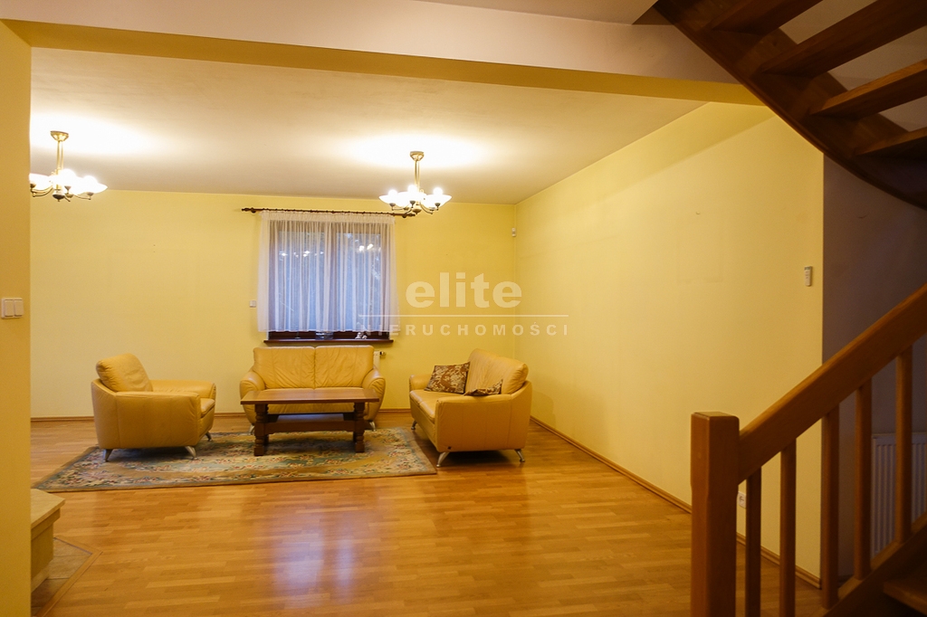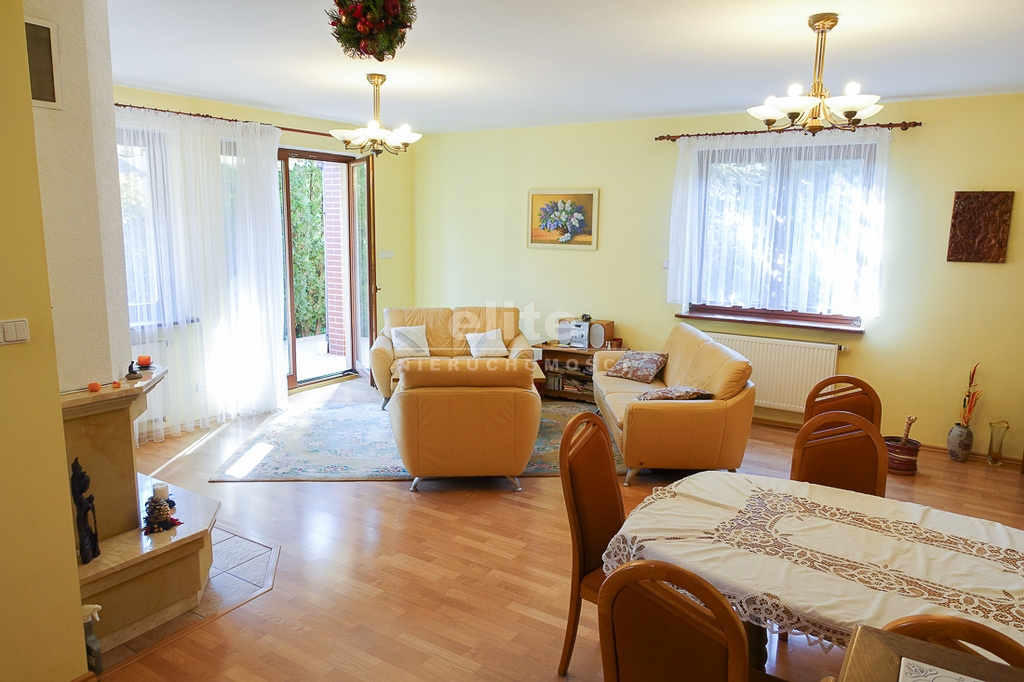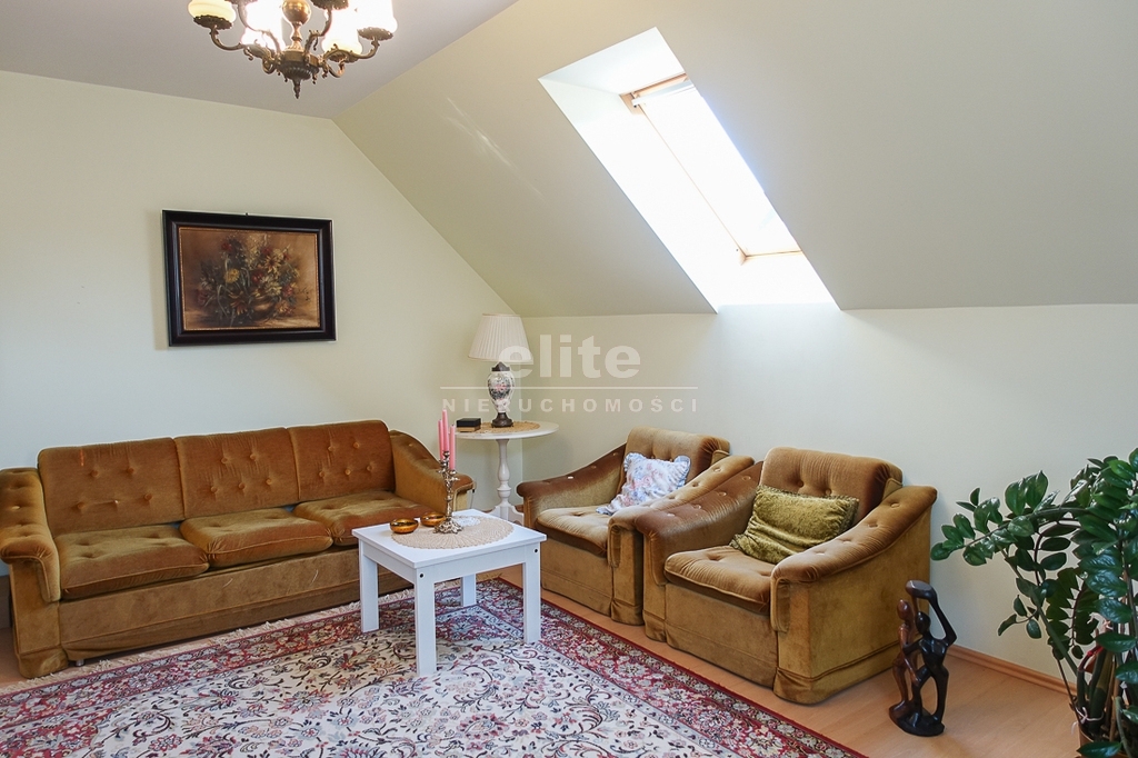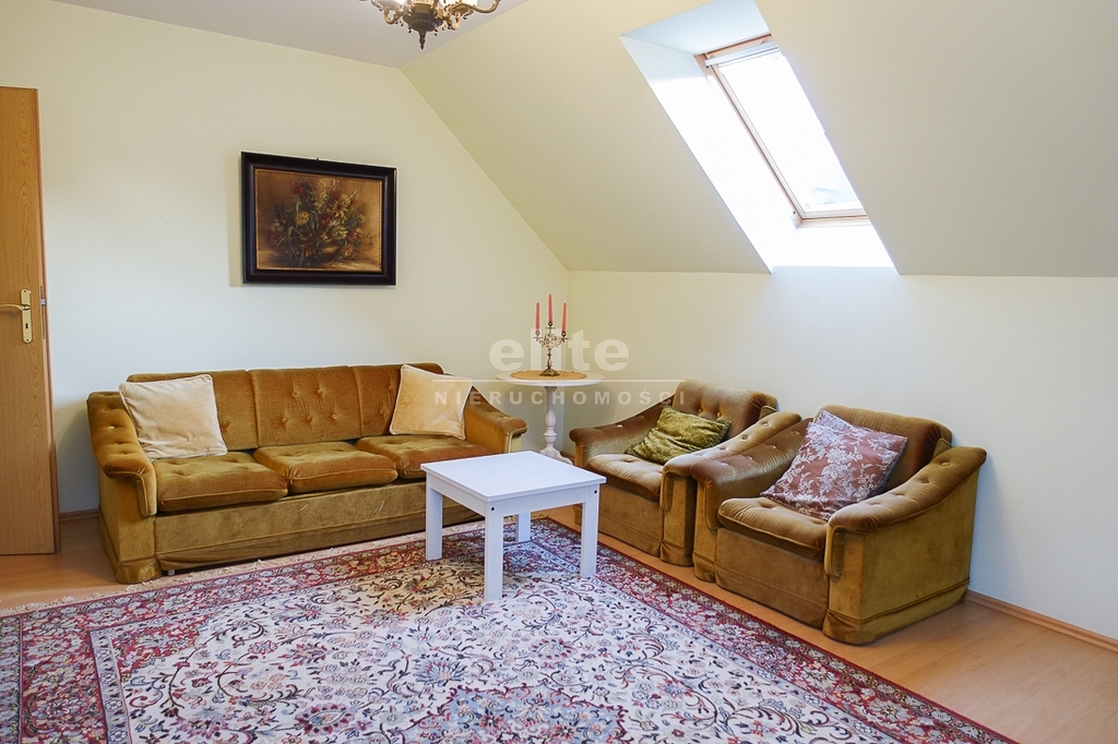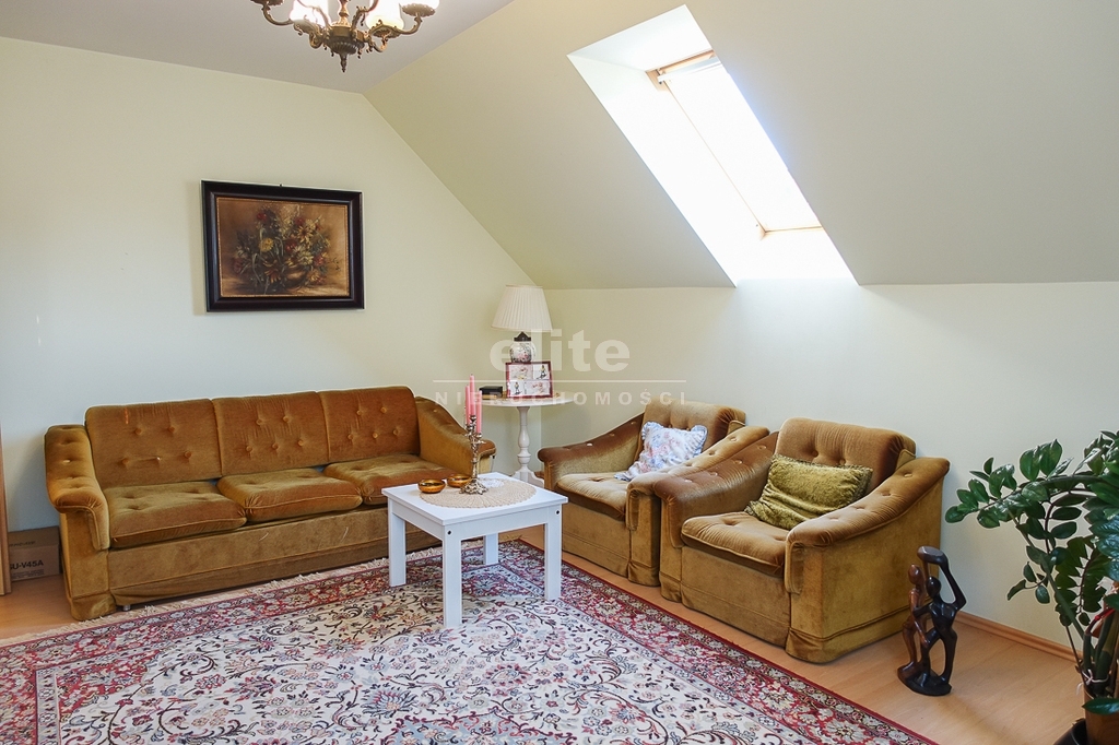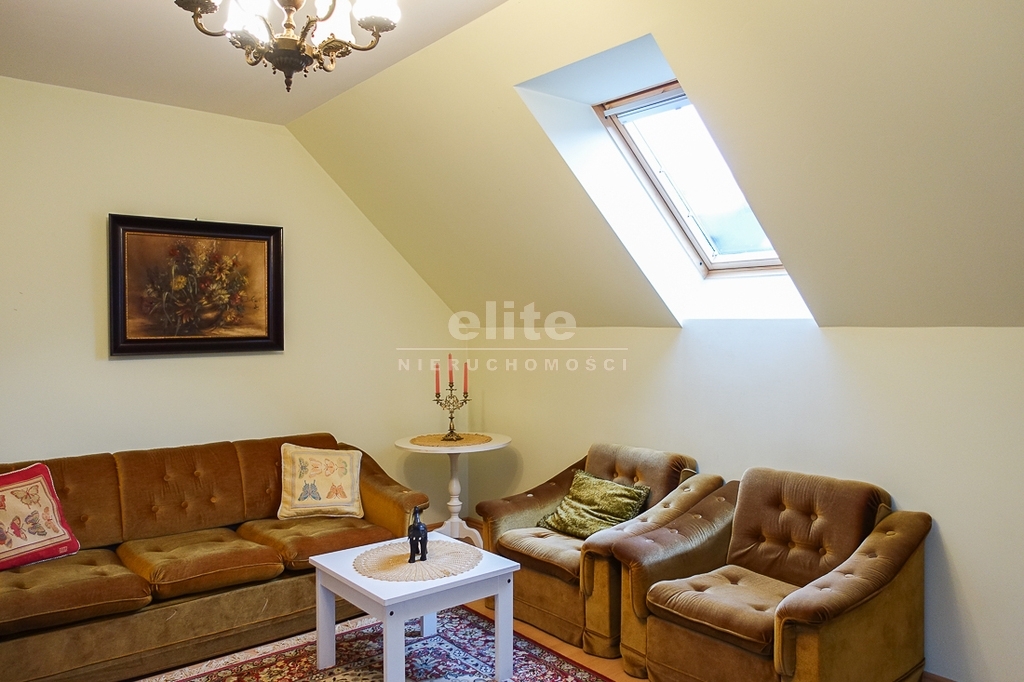 For sale is a detached house, built in 2000, very comfortable and functional. It is situated in a unique, intimate location in Gumieńce, on a very quiet street, surrounded by lush greenery and other single-family homes and green recreational areas. The area is located on Huzarów, Niepołomicka, and Tyniecka streets. The house has good access to public transportation. It is ideal for a multi-generational family. A family atmosphere was a priority in creating the house, which is evident in the thoughtful, friendly layout. Thanks to large windows on the ground floor, the interiors are full of natural light, emphasizing the open character of the house. The house was carefully planned with the family in mind, creating ideal conditions for relaxation and work. GROUND FLOOR (93.5 m²): * Hall (10.5 m²) - open to the living room, with entrances to the kitchen, guest toilet, technical rooms, and the attic. * The living room (32 m²) features a fireplace and double doors leading to a terrace (16 m²) surrounded by greenery, an ideal place for relaxation, and beyond to a garden with trees and shrubs. The living room opens to the hall. * The heart of the house is the spacious, bright kitchen (13.5 m²) - square in shape, with a window, whose soft lighting creates a cozy atmosphere, making cooking a real pleasure and conducive to family gatherings. Practical built-in furniture with appliances: refrigerator, 60 cm Whirlpool dishwasher, electric stove with ceramic hob and Amica oven, extractor hood), table and chairs. * Guest toilet (2.6 m²) - toilet with sink. FIRST FLOOR (88 m²): * Bedroom 24.5 m² (27.3 m² floor area)) with the convenience of a spacious wardrobe with a window, * Wardrobe 9 m² (11.5 m² floor area) * Room 16 m² (20.4 m² floor area) * Room 9.5 m² (12.7 m² floor area) * Lounge 18.5 m² (20 m² floor area) with a roof window, possibility of creating a common computer area * Bathroom 11.1 m² (13.5 m² floor area) with a bathtub, washbasin, toilet and bidet, with the possibility of installing a shower cabin, roof window. * Small wardrobe with sloping ceilings without a window. On the first floor, the bedrooms and rooms have full-size and roof windows. ATTIC: Access from the first floor hall via a drop-down staircase. Three storage rooms with roof windows. The roof is insulated, and the ceiling above the first floor is insulated. The attic height at its highest point is 2.65 m. The technical rooms are located on the ground floor, separate from the living area: * Laundry room (10.5 m²) with bathtub and washing machine, Buderus gas condensing boiler (replaced 3 years ago), and hot water tank (118 liters) * Pantry (5.2 m²) with an additional refrigerator * Garage (19.2 m²) for one car, with a remote-controlled up-and-over gate. Entrance to the house is through a vestibule (2.4 m²), with terracotta floors. BUILDING DESCRIPTION: Usable area 189.5 m² (more on the floor), plot 492 m². Surrounded by single-family and terraced houses. Garden with ornamental plantings. The entrance to the building and garage are from the ground floor. The house has no basement. The usable area is 189.5 m², and the total area is 250 m². The house is situated on a 492 m² plot. The ground and first floors have slight slopes (high knee wall), and the attic is unusable and low, without a basement. The building is constructed of silicate blocks with good insulating properties, and the roof is steeply pitched with metal tiles, insulated. The knee walls on the first floor are 1.4 m high. The bathroom and toilets are tiled with tiles and terracotta. The technical rooms are tiled with terracotta. Modern wooden VELUX windows, mahogany double-glazed, partially roof-hung windows on the first floor, and wooden window sills. Gas heating, burglar-proof entrance doors, remote-controlled burglar-proof roller shutters throughout the ground floor, alarm system, and CCTV. Built-in garage, with space for 1 car and two-wheelers. Hinged garage door controlled by remote control. Additionally, one parking space on the property in front of the garage. The plot is fenced with a remote-controlled gate. For sale: a detached house, built in 2000, very comfortable and functional. It's located in a quiet street in Gumieńce, surrounded by lush greenery and other single-family homes and recreational areas. Located near Huzarów, Niepołomicka, and Tyniecka streets, the house offers easy access to public transportation. Ideal for a multi-generational family. A family atmosphere was a priority in creating the house, which is evident in the carefully thought-out, welcoming layout. Thanks to large windows on the ground floor, the interiors are filled with natural light, emphasizing the open character. The house was carefully planned with the family in mind, creating ideal conditions for relaxation and work. Ground floor (93.5 m²): * Hall (10.5 m²) - open to the living room, with entrances to the kitchen, guest toilet, technical rooms, and attic. * The living room (32 m²) features a fireplace and double doors leading to a 16 m² terrace surrounded by greenery, an ideal place for relaxation, and further on to the garden with trees an