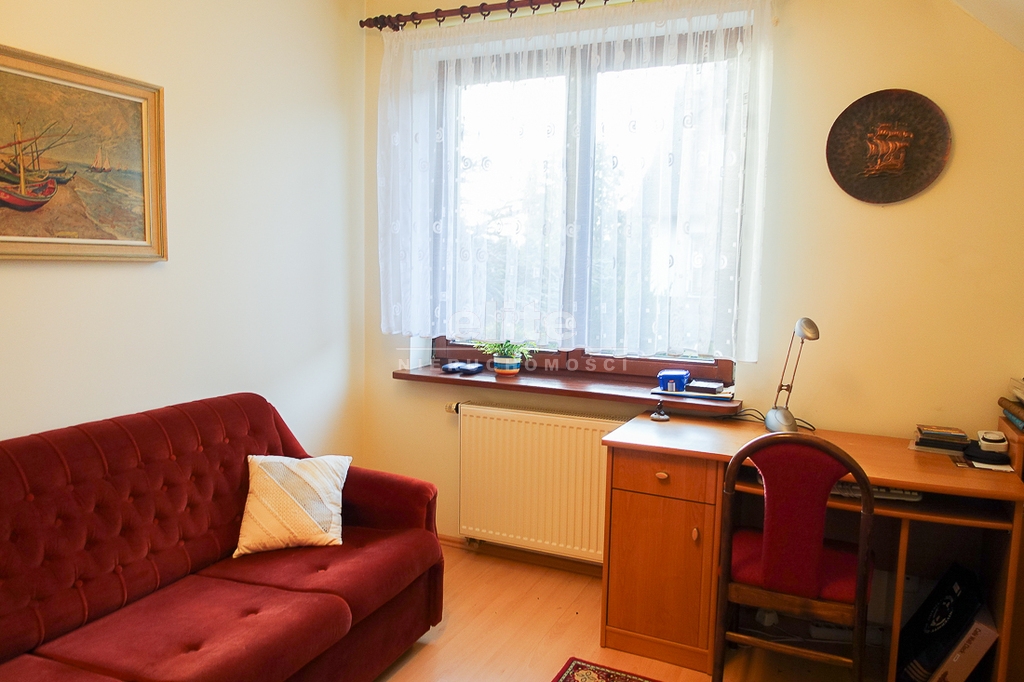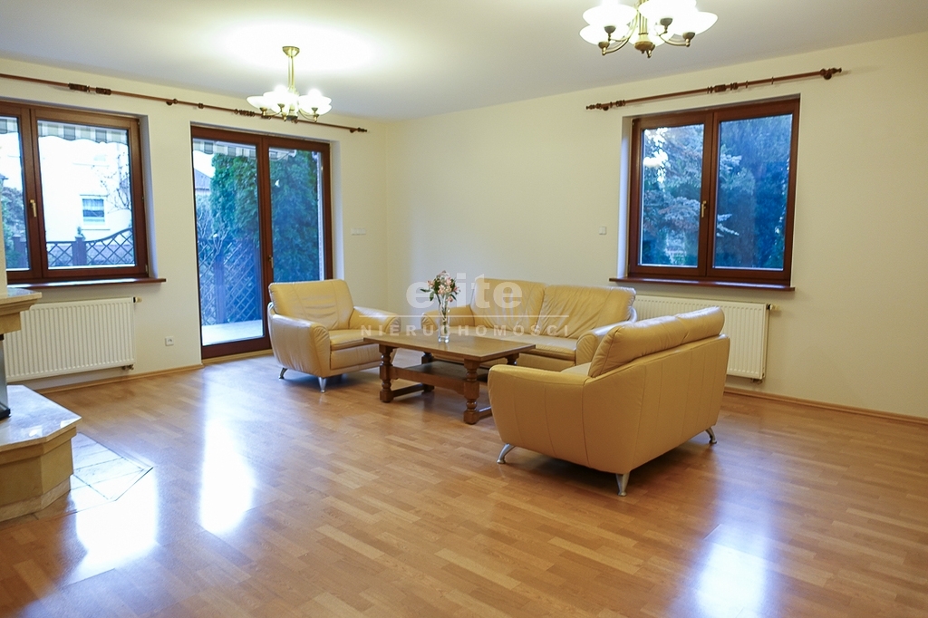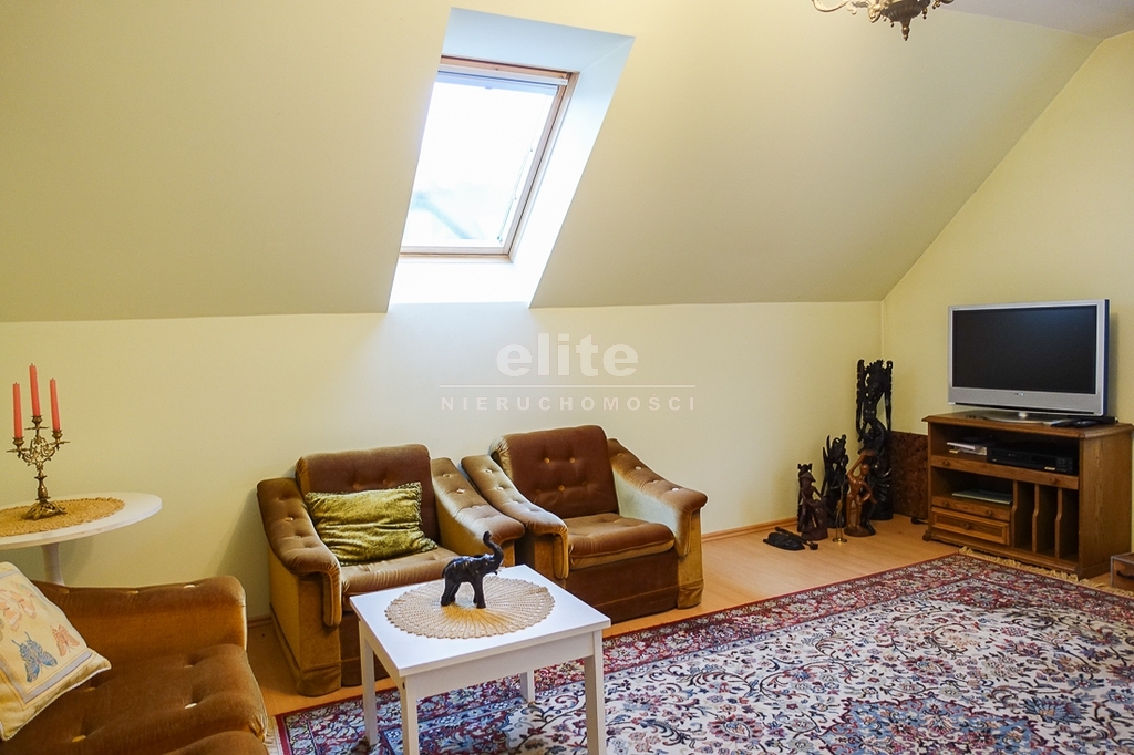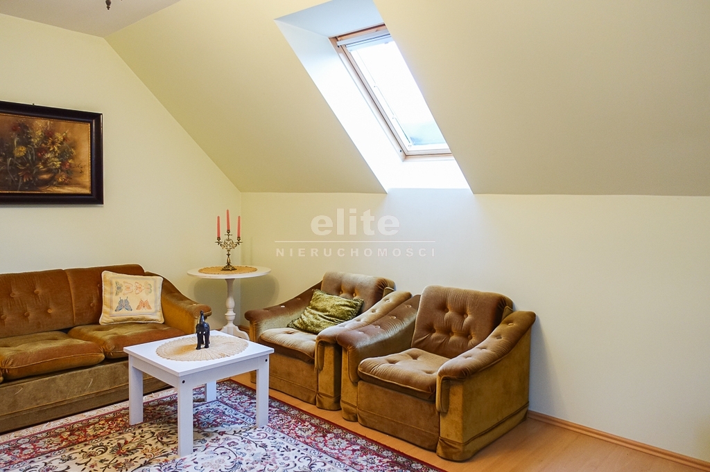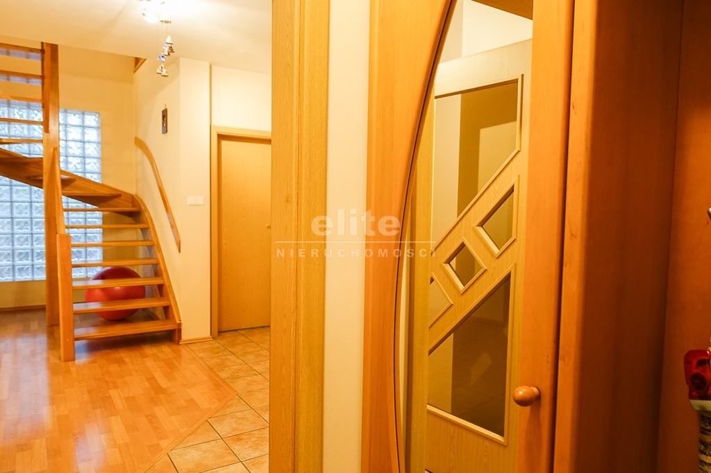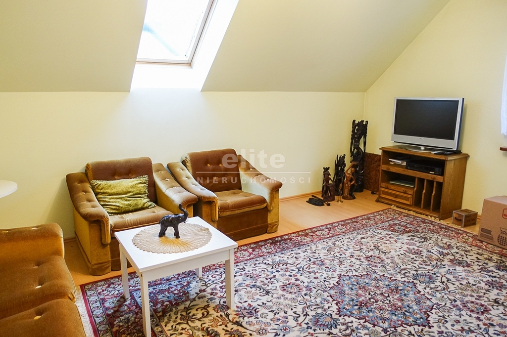 For sale is a detached house, built in 2000, very comfortable and functional. It is situated in a unique, intimate location in Gumieńce, on a very quiet street, surrounded by lush greenery and other single-family homes and green recreational areas. The area is located on Huzarów, Niepołomicka, and Tyniecka streets. The house has good access to public transportation. It is ideal for a multi-generational family. A family atmosphere was a priority in creating the house, which is evident in the thoughtful, friendly layout. Thanks to large windows on the ground floor, the interiors are full of natural light, emphasizing the open character of the house. The house was carefully planned with the family in mind, creating ideal conditions for relaxation and work. GROUND FLOOR (93.5 m²): * Hall (10.5 m²) - open to the living room, with entrances to the kitchen, guest toilet, technical rooms, and the attic. * The living room (32 m²) features a fireplace and double doors leading to a terrace (16 m²) surrounded by greenery, an ideal place for relaxation, and beyond to a garden with trees and shrubs. The living room opens to the hall. * The heart of the house is the spacious, bright kitchen (13.5 m²) - square in shape, with a window, whose soft lighting creates a cozy atmosphere, making cooking a real pleasure and conducive to family gatherings. Practical built-in furniture with appliances: refrigerator, 60 cm Whirlpool dishwasher, electric stove with ceramic hob and Amica oven, extractor hood), table and chairs. * Guest toilet (2.6 m²) - toilet with sink. FIRST FLOOR (88 m²): * Bedroom 24.5 m² (27.3 m² floor area)) with the convenience of a spacious wardrobe with a window, * Wardrobe 9 m² (11.5 m² floor area) * Room 16 m² (20.4 m² floor area) * Room 9.5 m² (12.7 m² floor area) * Lounge 18.5 m² (20 m² floor area) with a roof window, possibility of creating a common computer area * Bathroom 11.1 m² (13.5 m² floor area) with a bathtub, washbasin, toilet and bidet, with the possibility of installing a shower cabin, roof window. * Small wardrobe with sloping ceilings without a window. On the first floor, the bedrooms and rooms have full-size and roof windows. ATTIC: Access from the first floor hall via a drop-down staircase. Three storage rooms with roof windows. The roof is insulated, and the ceiling above the first floor is insulated. The attic height at its highest point is 2.65 m. The technical rooms are located on the ground floor, separate from the living area: * Laundry room (10.5 m²) with bathtub and washing machine, Buderus gas condensing boiler (replaced 3 years ago), and hot water tank (118 liters) * Pantry (5.2 m²) with an additional refrigerator * Garage (19.2 m²) for one car, with a remote-controlled up-and-over gate. Entrance to the house is through a vestibule (2.4 m²), with terracotta floors. BUILDING DESCRIPTION: Usable area 189.5 m² (more on the floor), plot 492 m². Surrounded by single-family and terraced houses. Garden with ornamental plantings. The entrance to the building and garage are from the ground floor. The house has no basement. The usable area is 189.5 m², and the total area is 250 m². The house is situated on a 492 m² plot. The ground and first floors have slight slopes (high knee wall), and the attic is unusable and low, without a basement. The building is constructed of silicate blocks with good insulating properties, and the roof is steeply pitched with metal tiles, insulated. The knee walls on the first floor are 1.4 m high. The bathroom and toilets are tiled with tiles and terracotta. The technical rooms are tiled with terracotta. Modern wooden VELUX windows, mahogany double-glazed, partially roof-hung windows on the first floor, and wooden window sills. Gas heating, burglar-proof entrance doors, remote-controlled burglar-proof roller shutters throughout the ground floor, alarm system, and CCTV. Built-in garage, with space for 1 car and two-wheelers. Hinged garage door controlled by remote control. Additionally, one parking space on the property in front of the garage. The plot is fenced with a remote-controlled gate. For sale: a detached house, built in 2000, very comfortable and functional. It's located in a quiet street in Gumieńce, surrounded by lush greenery and other single-family homes and recreational areas. Located near Huzarów, Niepołomicka, and Tyniecka streets, the house offers easy access to public transportation. Ideal for a multi-generational family. A family atmosphere was a priority in creating the house, which is evident in the carefully thought-out, welcoming layout. Thanks to large windows on the ground floor, the interiors are filled with natural light, emphasizing the open character. The house was carefully planned with the family in mind, creating ideal conditions for relaxation and work. Ground floor (93.5 m²): * Hall (10.5 m²) - open to the living room, with entrances to the kitchen, guest toilet, technical rooms, and attic. * The living room (32 m²) features a fireplace and double doors leading to a 16 m² terrace surrounded by greenery, an ideal place for relaxation, and further on to the garden with trees an