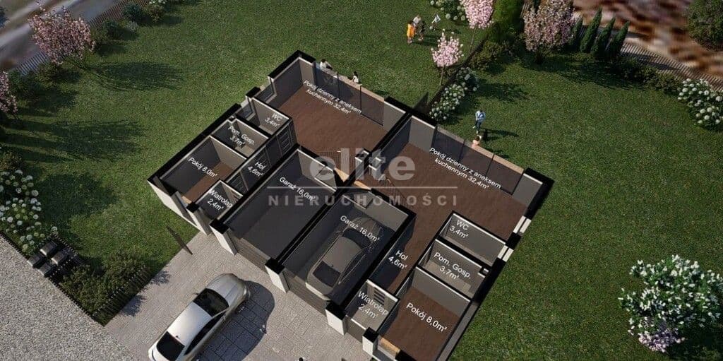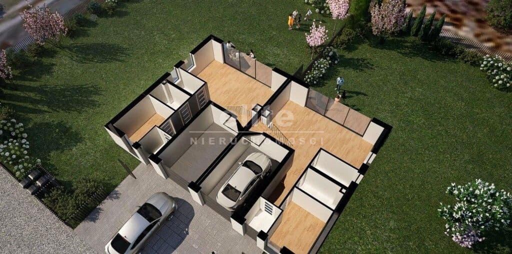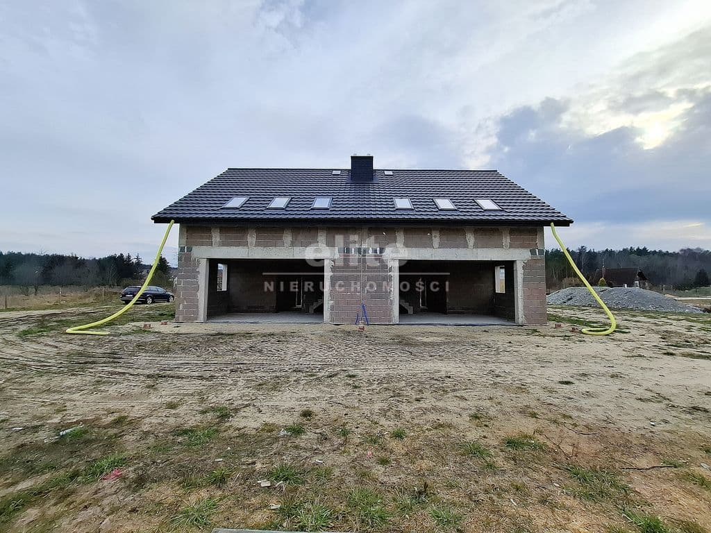 Nowy przestronny dom wolnostojący w zabudowie bliźniaczej położony w Jęczydole gmina Kobylanka, powiat stargardzki w sąsiedztwie lasu o powierzchni całkowitej wraz z kotłownią i garażem 137 m2 i użytkowej 126 m2. Dom znajduje się w połowie drogi między Szczecinem a Stargardem. Bardzo dobry i szybki dojazd drogą szybkiego ruchu zarówno od prawobrzeżnych dzielnic Szczecina (10 minut) jak i Stargardu. Teren ekologicznie czysty. Świeże powietrze i otwarte tereny zielone w pobliżu domu. W sąsiedztwie kilkuletnie przytulne osiedle domów wolno-stojących, gdzieniegdzie urozmaicone zabudową bliźniaczą. Projekt domu bardzo funkcjonalny. Duże charakterystyczne okna zarówno w części parteru. Powierzchnia działki bardzo duża 678 m2. Działka będzie częściowo ogrodzona. Na wjeździe do garażu będzie możliwość parkowania samochodu. Powierzchnia całkowita garażu wynosi 18 m2. Budowa zostanie zakończona w standardzie deweloperskim na wrzesień 2025 roku. Budynek posiadać będzie bardzo dobre parametry termiczne. Okna PCV trzyszybowe. W cenie żaluzje na parterze sterowane elektrycznie. W salonie na parterze możliwość podłączenia kominka. Ocieplenie budynku z zewnątrz styropianem o grubości 20 cm, w połaci dachowej piana PUR (20 cm). Ściany zewnętrzne i wewnętrzne nośne z bloczków z Keramzytu. Ogrzewanie parteru i piętra za pomocą foli grzewczych + instalacja PV na dachu (panele fotowoltaiczne). Dodatkowo na wyposażeniu jest zamontowana jednostka rekuperacji. Drzwi zewnętrzne do budynku antywłamaniowe. Zakończenie stanu deweloperskiego wrzesień 2025. Działka ogrodzona zostanie po zakończeniu inwestycji siatką z trzech stron.