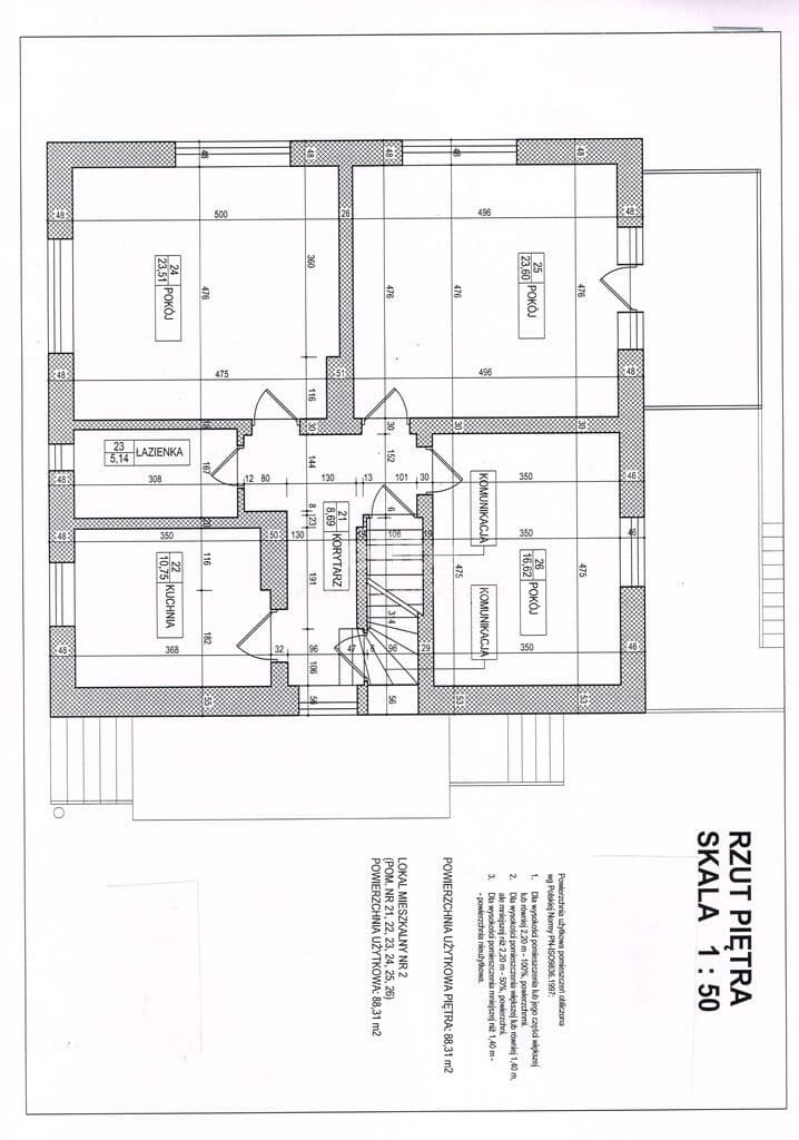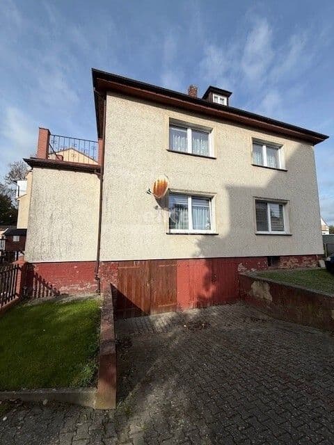 Atrakcyjna część domu wolno stojącego w podziale poziomym, zlokalizowana w Kamieniu Pomorskim, na pierwszym piętrze przedwojennego budynku o klasycznej architekturze. Przedmiotem sprzedaży jest lokal mieszkalny wraz ze strychem, pomieszczeniem gospodarczym w piwnicy, udział w gruncie oraz działka o powierzchni 383m2 przyległa do sprzedawanej nieruchomości. Powierzchnia użytkowa mieszkania wynosi 88,31m2 i składa się z:- korytarza ok. 9m2, -pokoju o pow. ok. 24m2 z wyjściem na balkon, pokoju o pow 23,5m2, dużej kuchni o powierzchni 10m2 oraz łazienki razem z wc o powierzchni 5m2. Pokoje i kuchnia są niezwykle ustawne i bardzo dobrze doświetlone. Na podłogach znajduje się deska oraz w łazience kafle. Okna wymienione na pcv, Instalacja ogrzewania miedziana. Na dachu dachówka cementowa. Współwłaściciele domu dokonali podziału części wspólnych na zasadzie wyłącznego korzystania. Księga Wieczysta bez obciążeń. Na przyległej działce prawdopodobnie istnieje możliwość utworzenia dogodnej ilości miejsc postojowych, wystąpienia o pozwolenie na wybudowanie garażu, lub wykorzystanie jej na cele rekreacyjne - będzie to wynikało z planu ogólnego lub MPZP. Doskonały dojazd do nieruchomości. Miejscowość Kamień Pomorski położona jest nad Zalewem Kamieńskim, 90 km od Szczecina i 8km od morza. Posiada nową, piękną marinę -w jednym z najnowocześniejszym portów jachtowych na południowym Bałtyku oraz zabytkową, XII wieczną Katedrę.