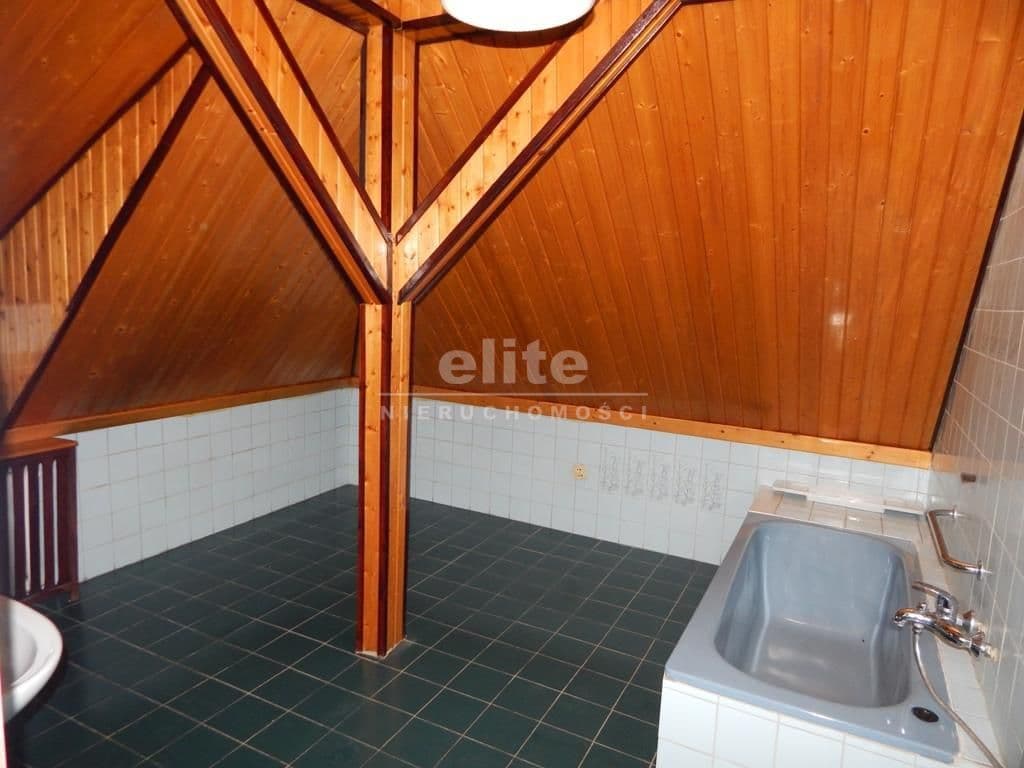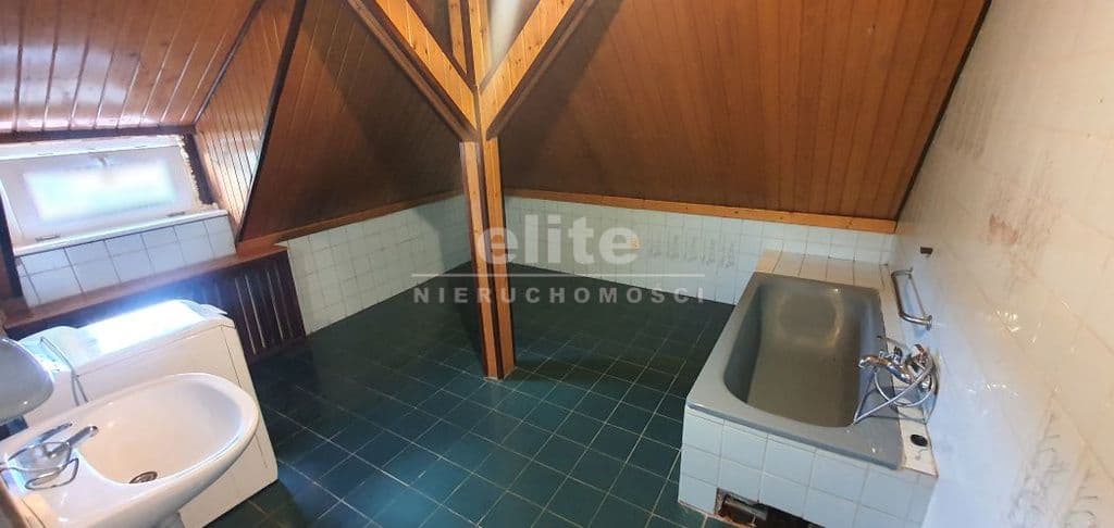 - na poddaszu - duża otwarta przestrzeń (35 m2), aktualnie podzielona na 2 osobne pokoje oraz łazienka (8 m2) z WC, wanną, umywalką, w glazurze i terakocie.