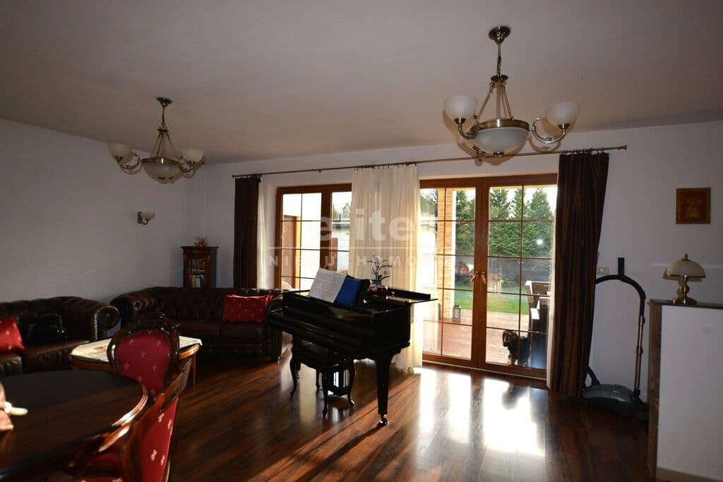 - Przestronny salon z kominkiem (32 m²) oraz wyjściem na taras,
