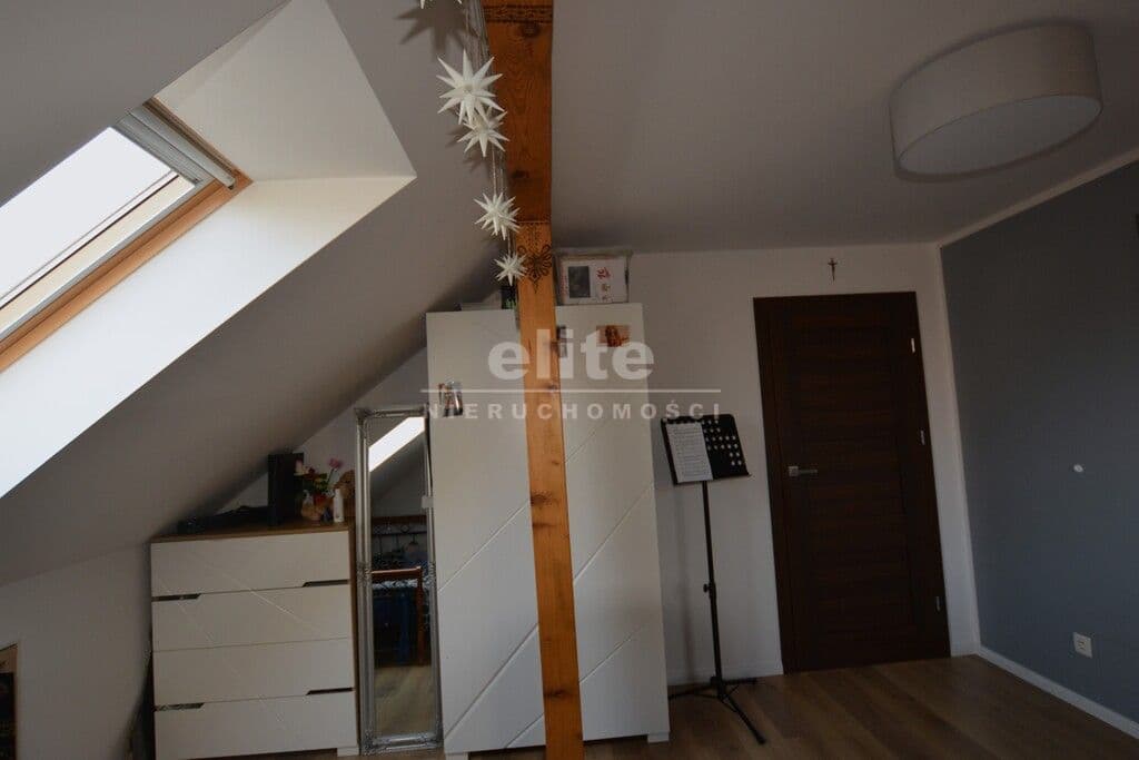 Dodatkowo są dwa przestrzenne strychy (nad piętrem i nad garażem).