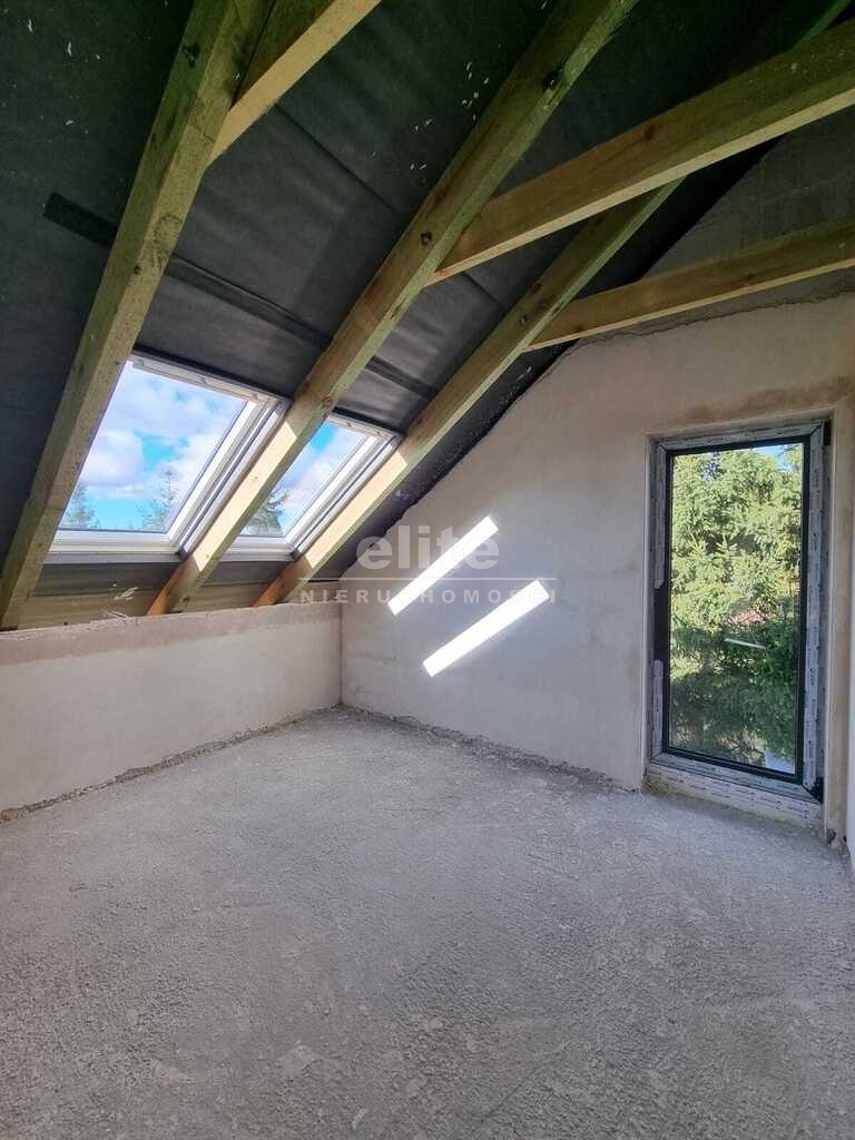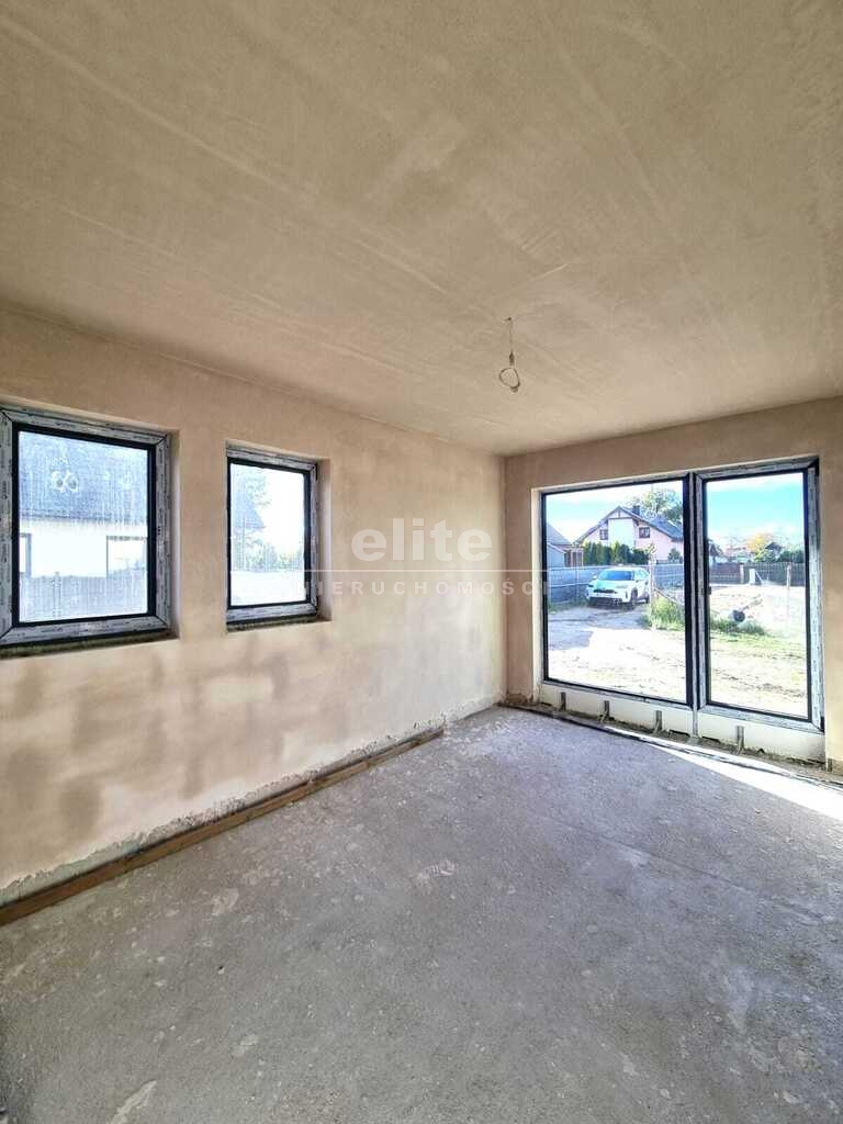 Codzienny Wariant VIII". Jest w stanie deweloperskim, na ścianach tynki gipsowe, okna trzyszybowe, kompleksowa elektryka (włącznie z przyłączeniem do skrzynki ZK), do wyboru źródło ogrzewania: pompa ciepła, piec na paliwo stałe lub gaz z butli. Działka została oczyszczona z korzeni i zbędnej roślinności, zostało na niej kilka pięknych świerków.