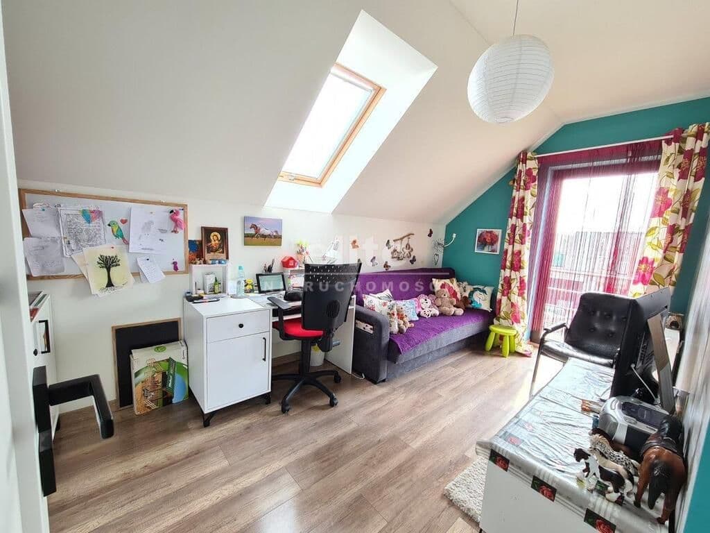 - poddasze (pow. użytkowa 65,74 m2): pokój (10,20 m2), pokój (10,18 m2), pokój (9,99 m2), pokój (9,09 m2) z garderobą (2,34 m2), łazienka z wanną, umywalką, bidetem i toaletą (5,88 m2), pralnia (4,59 m2), hol (8,52 m2), schody (4,95 m2).