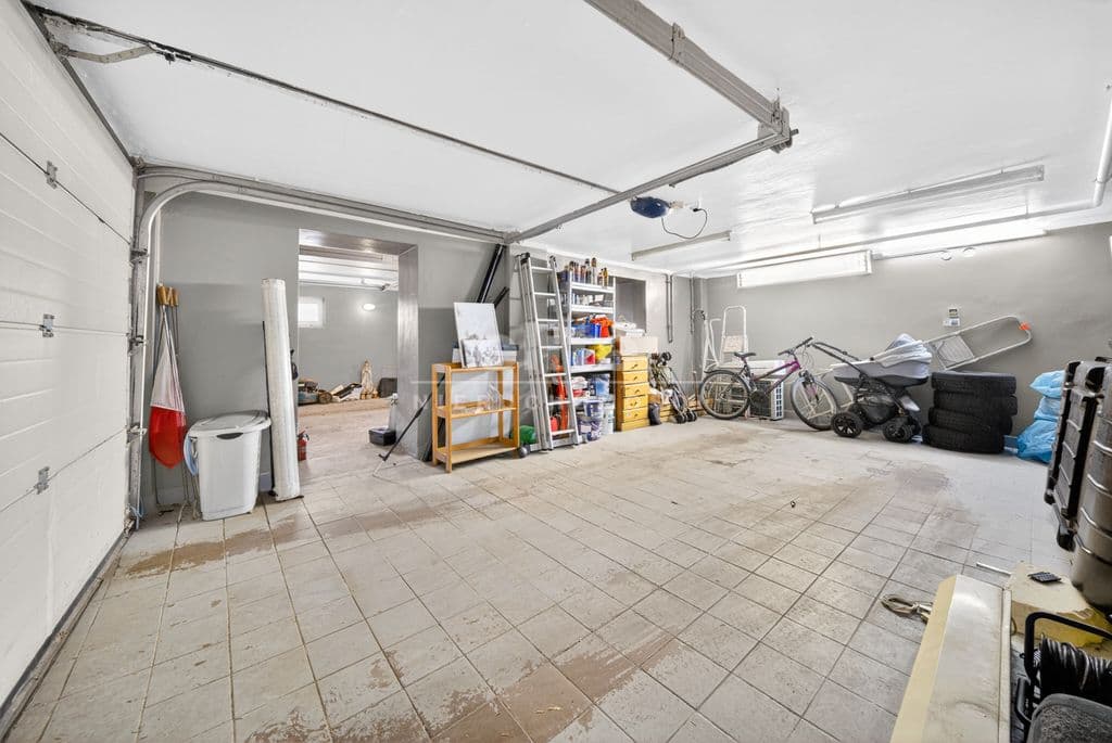 * Przyziemie - mnóstwo pomieszczeń z przeznaczeniem na pokoje/gabinety/pomieszczenia gospodarcze itp., łazienka, toaleta, garaż dwustanowiskowy, korytarze, klatka schodowa.