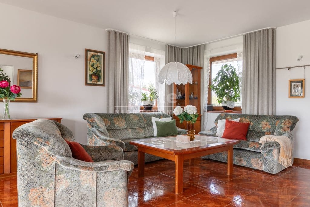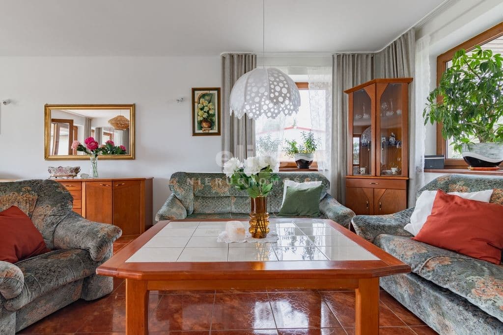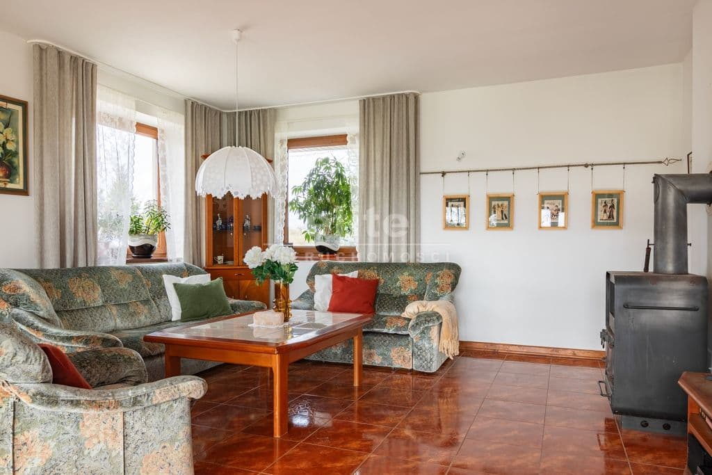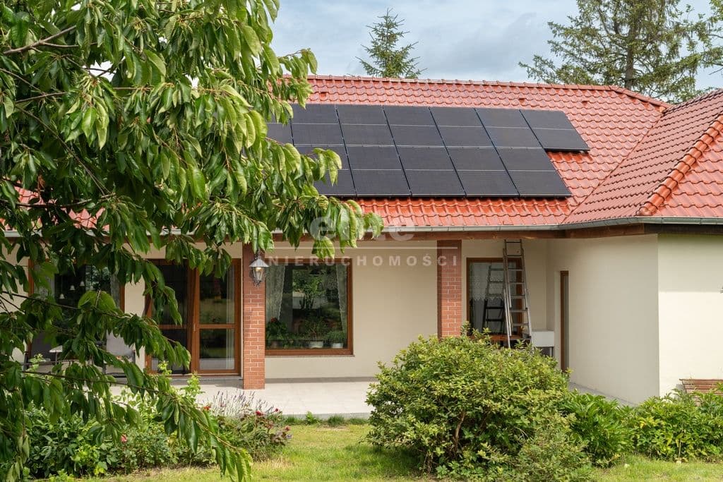 Dom jest solidnie wykonany i ocieplony. Na dachu zainstalowano panele fotowoltaiczne dzięki czemu ogrzewanie budynku i grzanie wody za pośrednictwem pompy ciepła oraz korzystanie z innych urządzeń elektrycznych jest niemal darmowe. W budynku jest też instalacja gazowa i piec gazowy a w salonie dodatkowo piec wolnostojący tzw. koza, więc mamy alternatywne źródła ciepła. W miejscu kozy można zainstalować kominek.